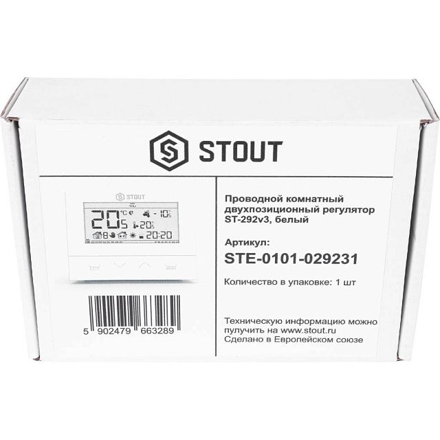 STOUT Проводной комнатный двухпозиционный регулятор ST-292v3, белый