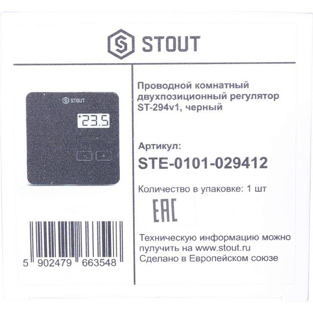 STOUT Проводной комнатный двухпозиционный регулятор ST-294v1, черный
