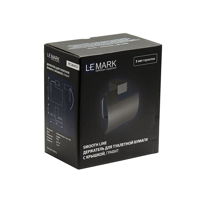 Держатель для туалетной бумаги Lemark SMOOTH LINE с крышкой, графит