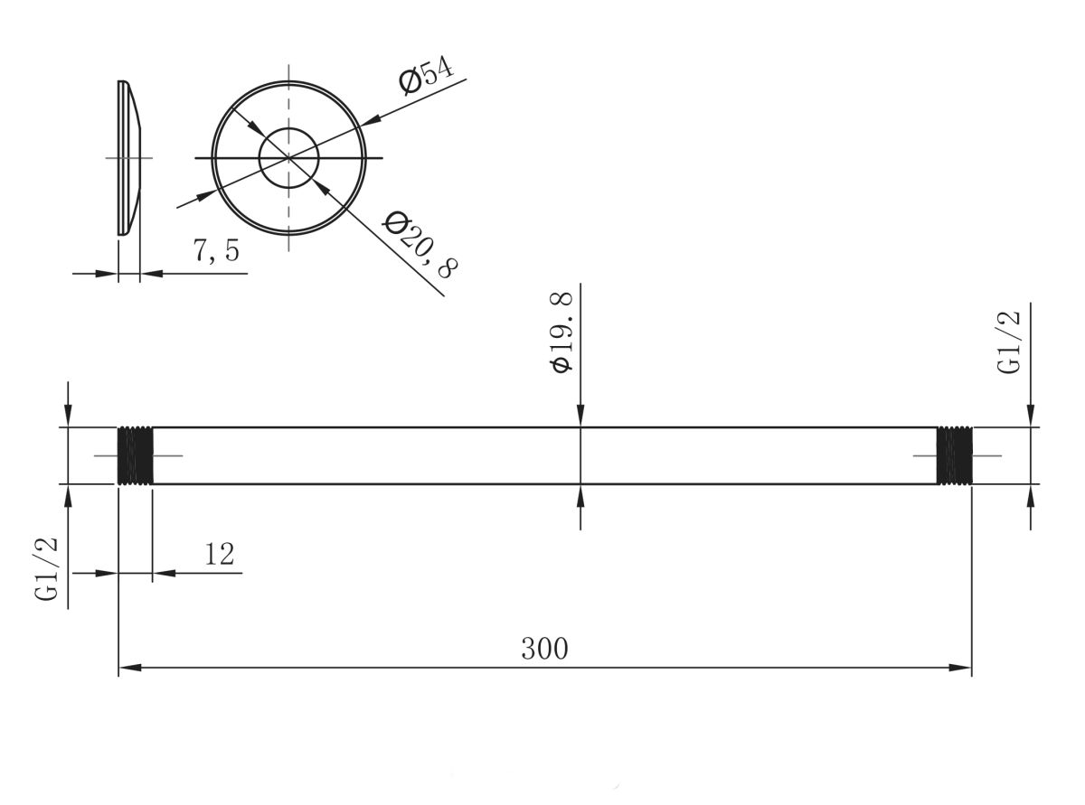 Держатель потолочный Lemark LM8032C для лейки верхнего душа 300мм, хром