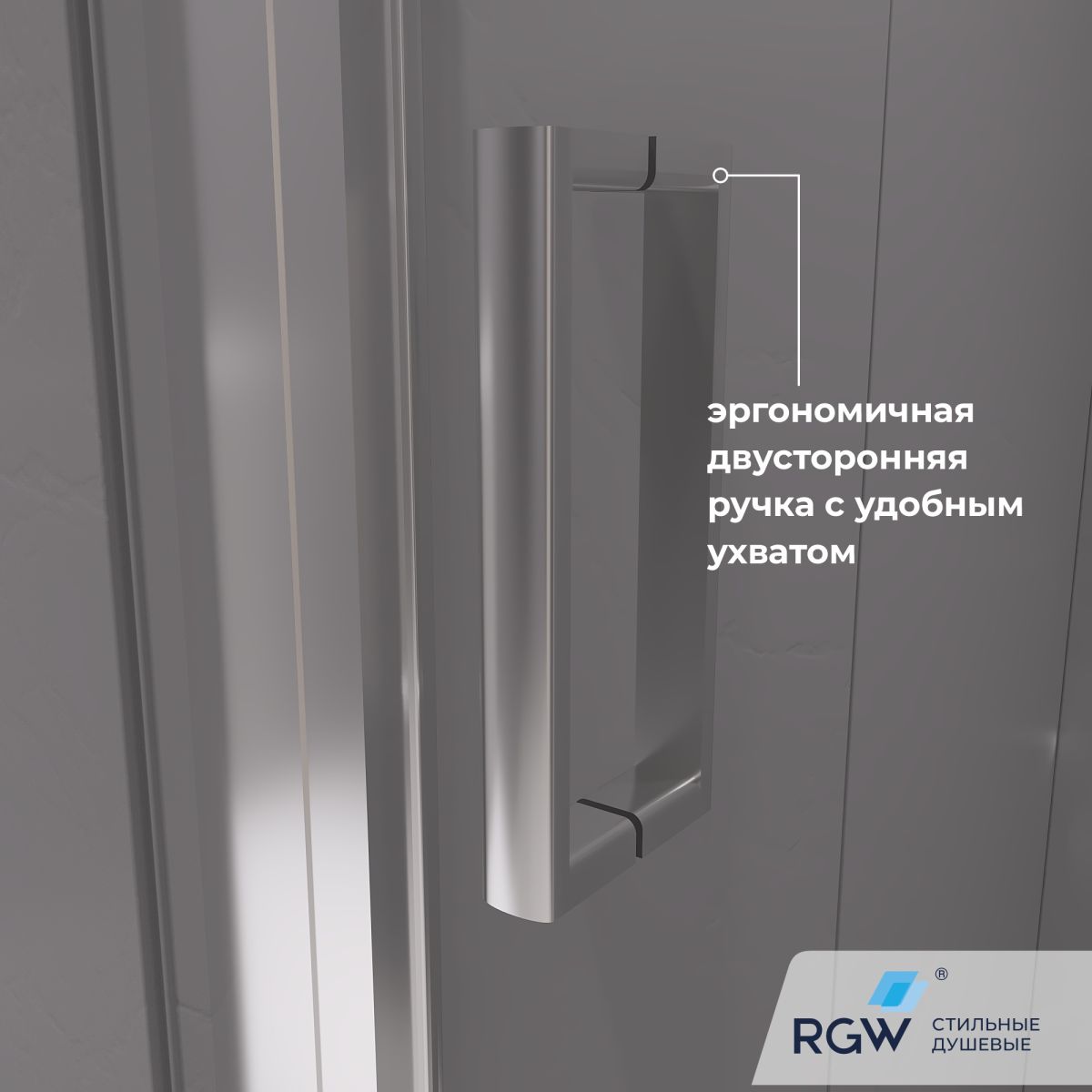 Роликовый механизм в каретках — это качественная усиленная фурнитура серии «Modular Three-Part Roller» разработана немецкими инженерами специально для компании RGW «Стильные Душевые». Высокотехнологичные и надежные роликовые механизмы рассчитаны на 30 000 циклов работы. Ролики для закаленного стекла премиального качества, с внутренней стороны имеют скрытый крепеж, монтажные крепления вровень со стеклом. Роскошная деталь в ролике, возможность регулировать эксцентриком. Колёса роликов выполнены из передового сплава акриловых смол и гелькоута, который обеспечивает высокую устойчивость к истиранию во влажной среде. Ролики для душевой двери устойчивы к коррозии и обладают высоким стандартом и безотказной работы.
