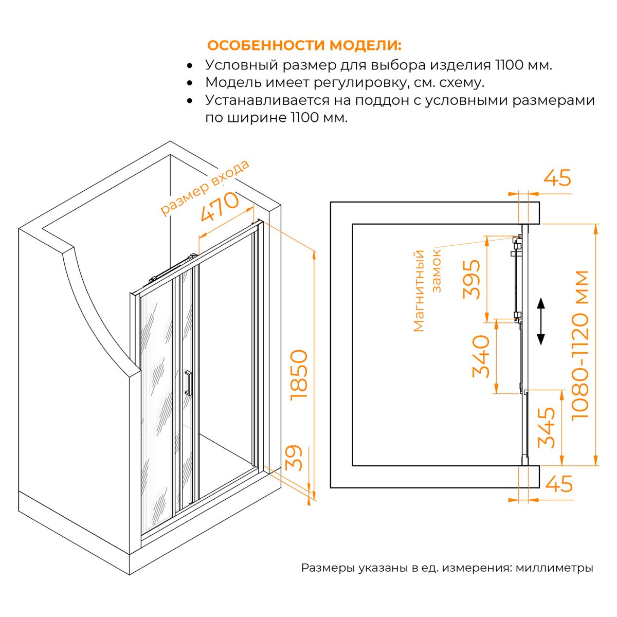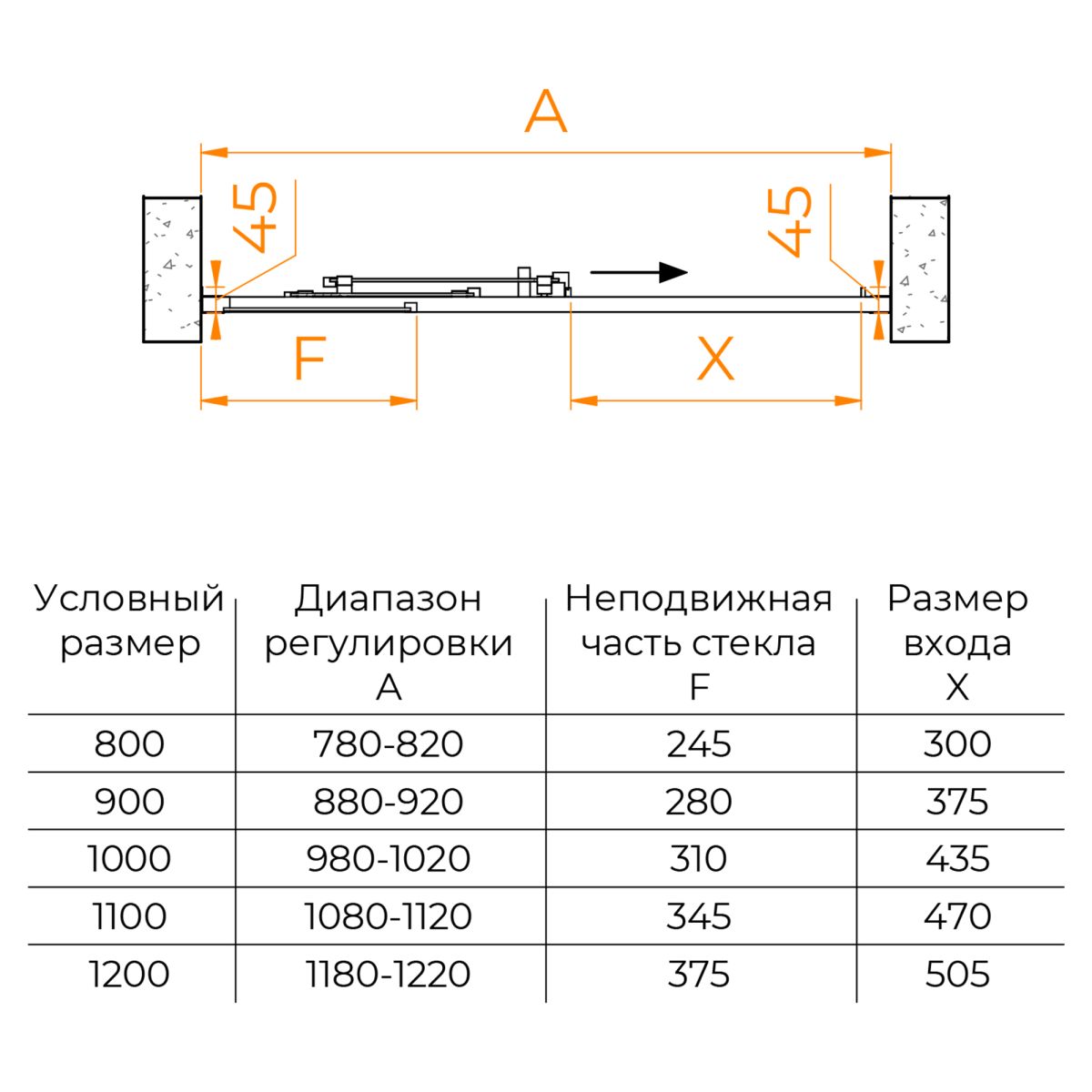Ширина: 800 мм, 900 мм, 1000 мм, 1100 мм; - регулировка изделия - 40 мм. (-20 мм + 20 мм)