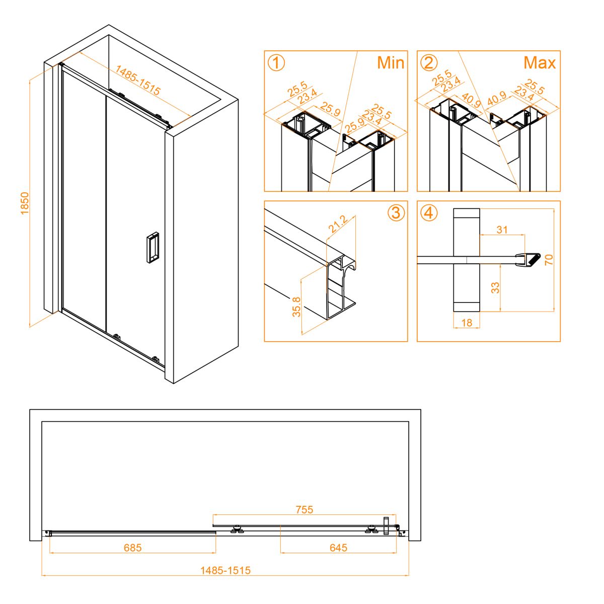 Регулируемый профиль - еще одно преимущество этой душевой двери. Он позволяет легко регулировать дверь по вертикали, что обеспечивает идеальное соответствие с ванныей комнатой.