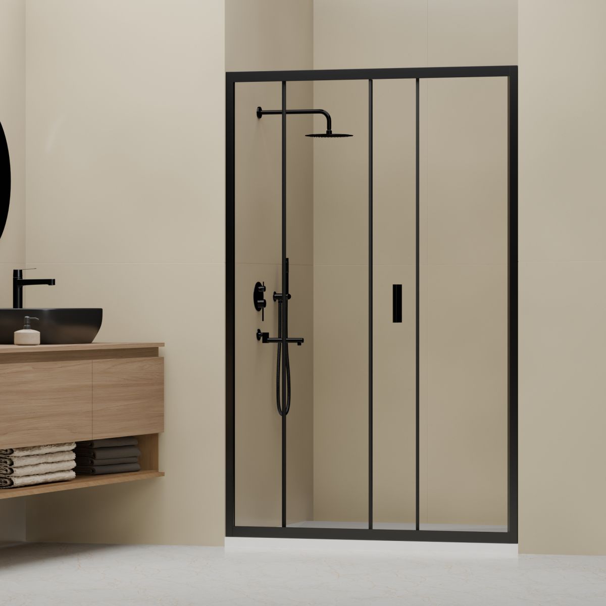 Профиль двери выполнен в черном цвете, что придает дополнительную элегантность и изысканность. Черный цвет профиля также позволяет гармонично вписаться в любой дизайн интерьера.