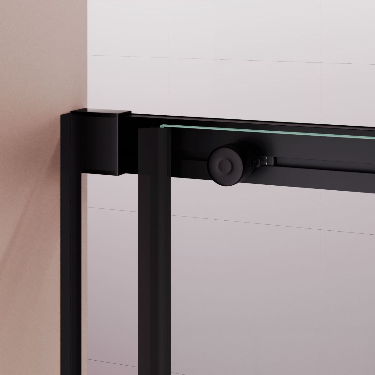 Дверь имеет толщину стекла 6 мм, которая обеспечивает прочность и надежность конструкции. Стекло выполнено в прозрачном цвете, что придает двери легкость и визуальное пространство. Профиль двери выполнен в черном цвете, что отлично сочетается с современным интерьером ванной комнаты и придает ей элегантность.