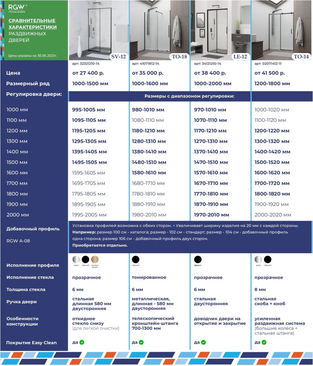 Заказать душевую дверь RGW LE-12B можно прямо сейчас. У нас товар всегда в наличии, и мы гарантируем быструю доставку в любой регион. Сделайте вашу ванную комнату еще более комфортной и стильной с душевой дверью RGW LE-12B!