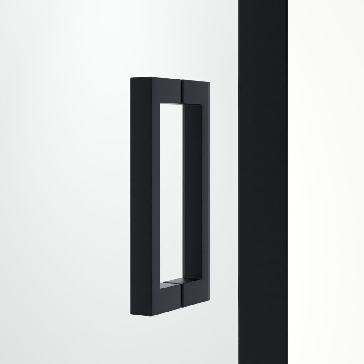 Профиль двери выполнен из анодированного алюминия черного цвета, что придает ей элегантный и современный вид. Высота общая двери составляет 1950 миллиметров. Конструкция дверей раздвижная, что позволяет сэкономить место в ванной комнате.