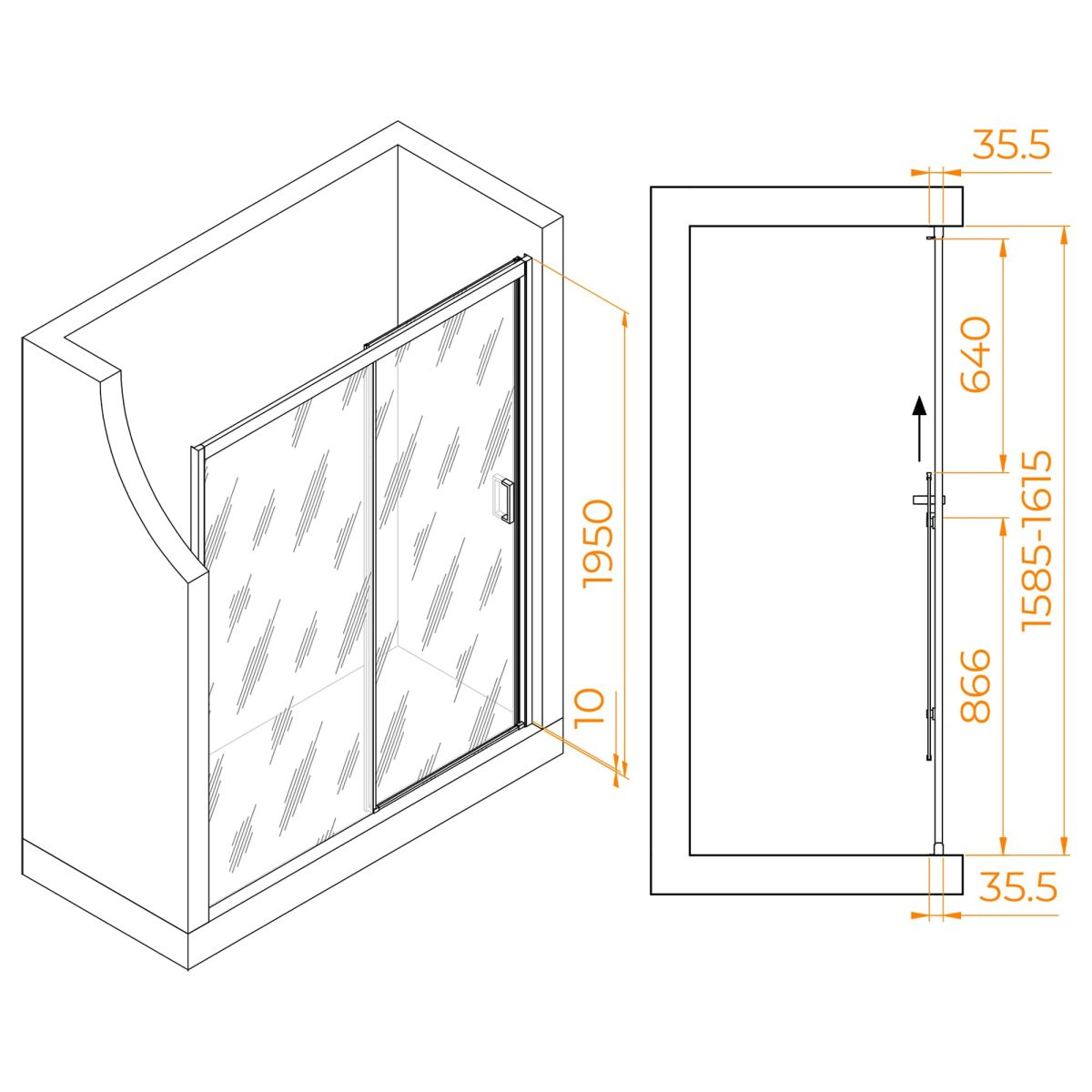 Конструкция дверей раздвижная, это позволяет максимально использовать доступное пространство в ванной комнате. Роликовый подшипник и регулируемый профиль упрощают установку и обеспечивают гладкое и бесшумное движение дверей.