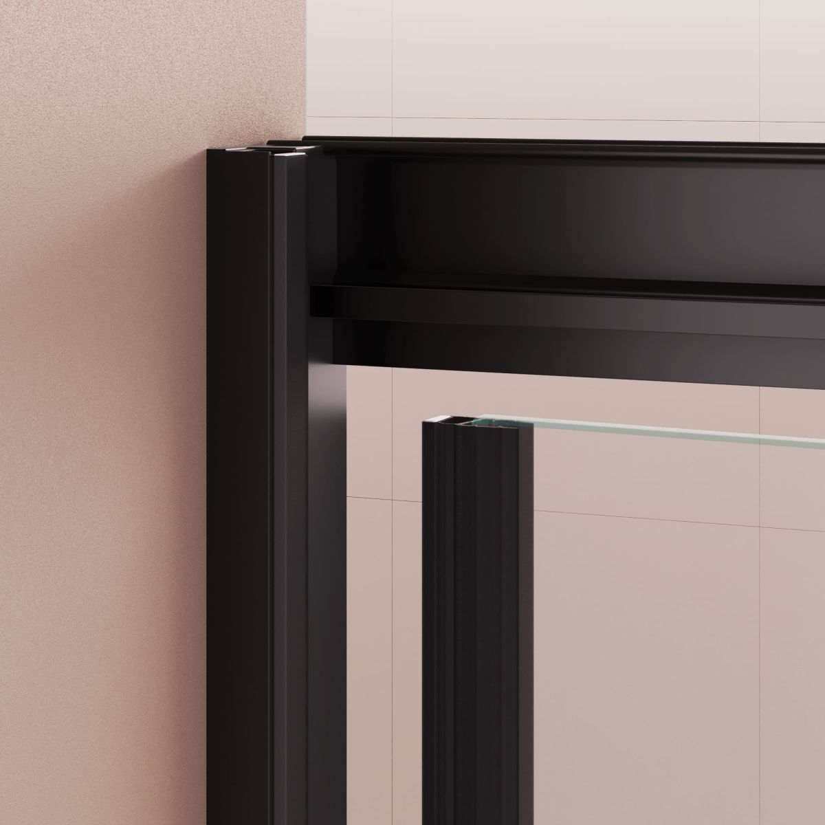 Главной особенностью этой душевой двери является её черный профиль, который придает ей стильный и современный вид. Профиль выполнен из анодированного алюминия, что обеспечивает стойкость к коррозии и истиранию.