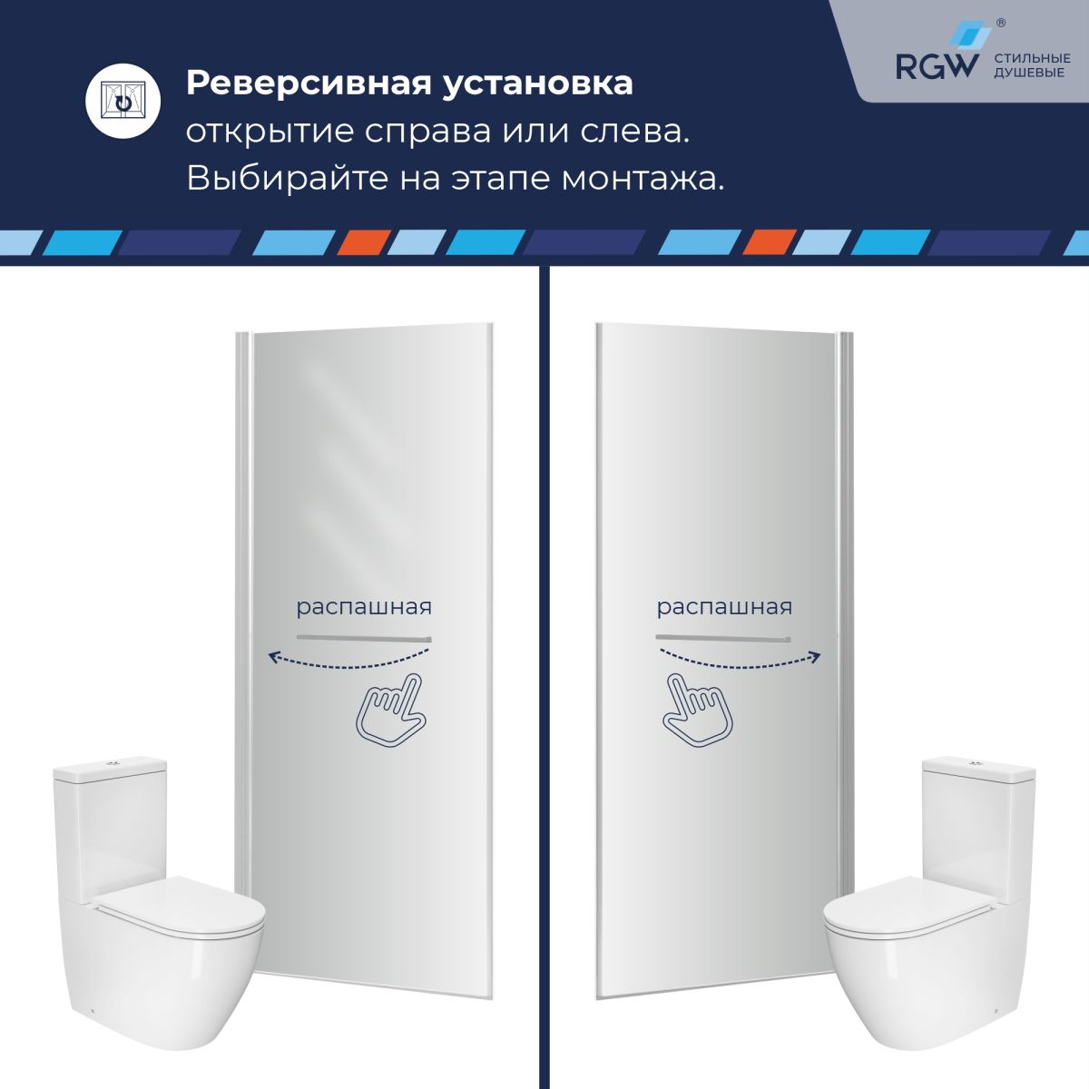 Душевая дверь распашная с маятниковой петлей (открытие только наружу). Маятниковые петли с функцией подъема двери. В комплекте нижняя пороговая планка. Стальная ручка - полотенцедержатель. Трап или поддон приобретается отдельно.