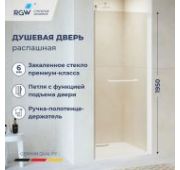 Створки двери изготовлены из премиального закаленного стекла толщиной 6 мм. Стекло имеет высокую степень прозрачности и блеска.