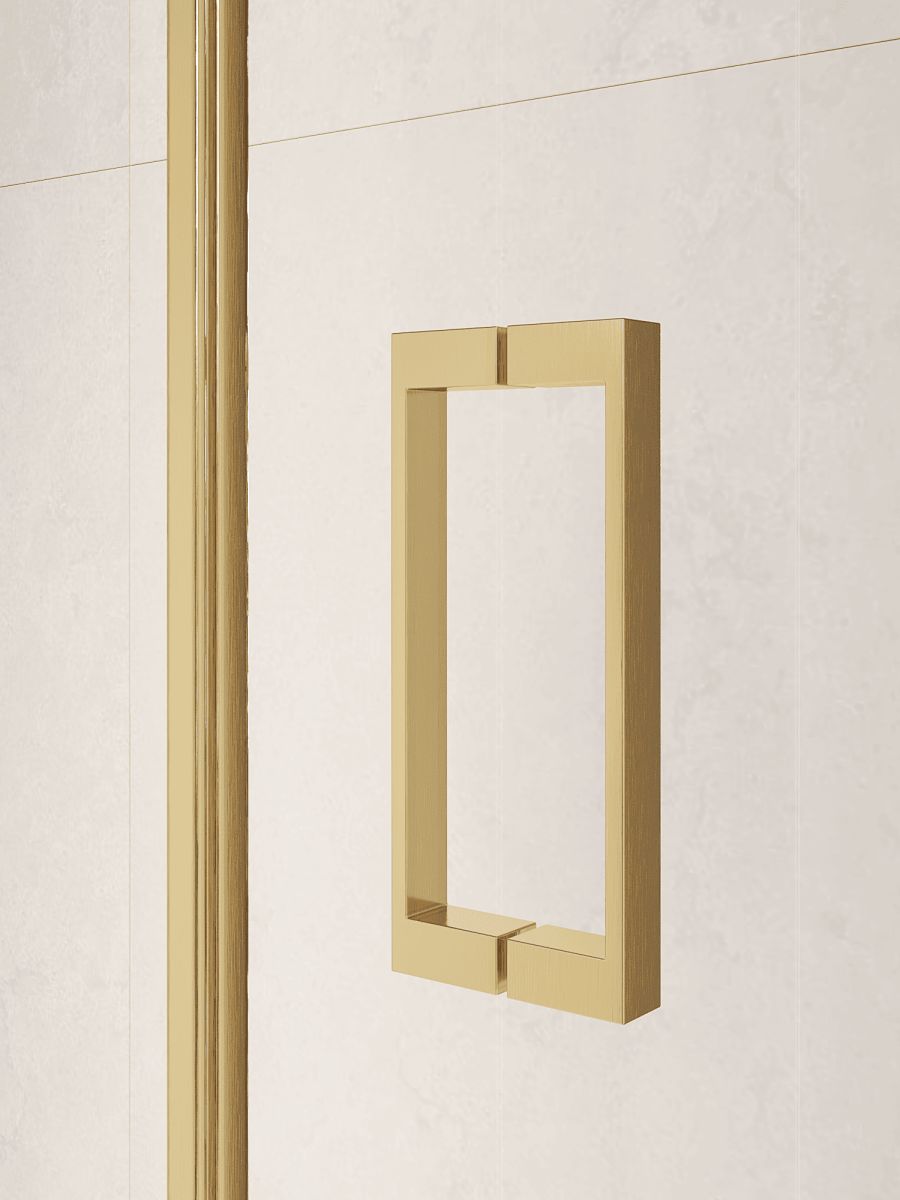 Двух створчатая маятниковая душевая дверь PA-104 с механизмом "Gravity Loop" представлена в популярных цветовых решениях: хром, черный и золото brush.