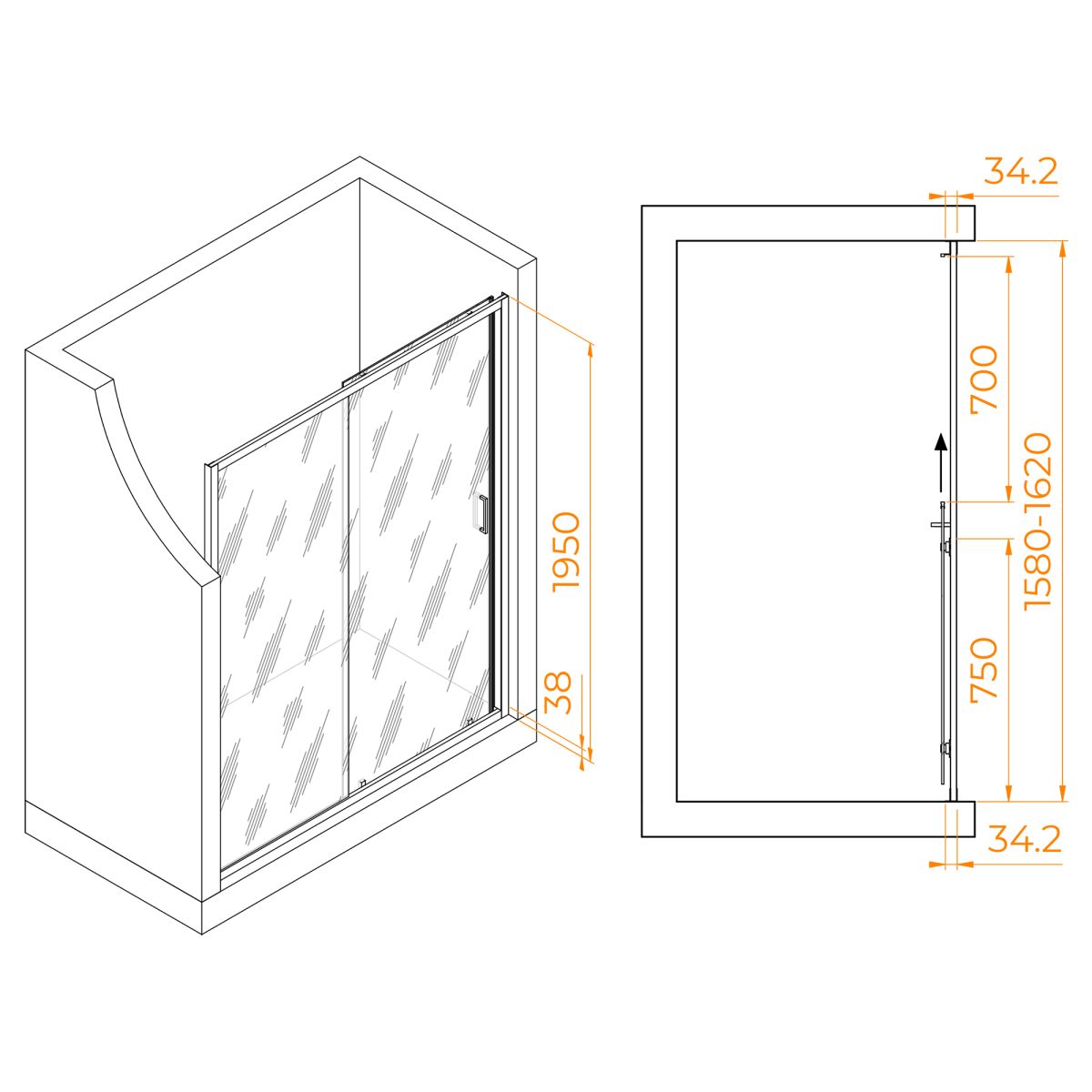 Высота общая двери составляет 1950 мм, а ее конструкция – раздвижная, что позволяет с комфортом использовать пространство в ванной комнате. Дверь имеет магнитный уплотнитель, обеспечивая первый класс герметичности и защищая ванную комнату от брызг воды.