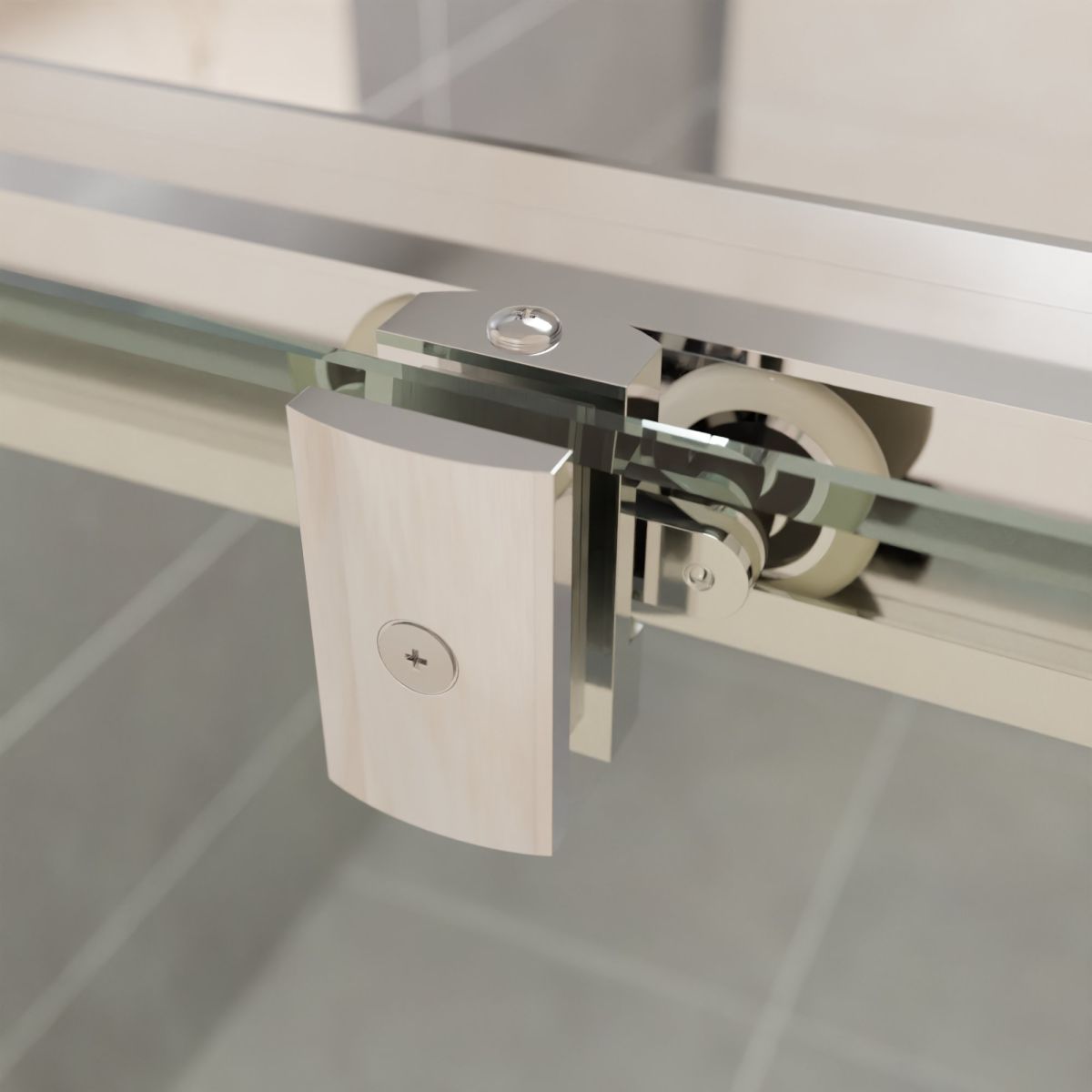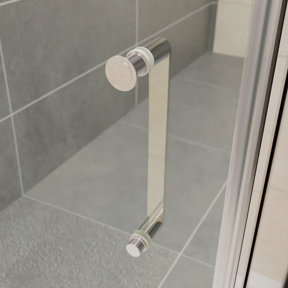 Толщина стекла двери составляет 6 мм и обладает высокой прочностью. Материал стекла выбран прозрачный, что позволяет сохранить пространственную свободу и прозрачность в ванной комнате. Цвет профиля двери выполнен в хромированном исполнении и добавляет глянцевый блеск интерьеру ванны.