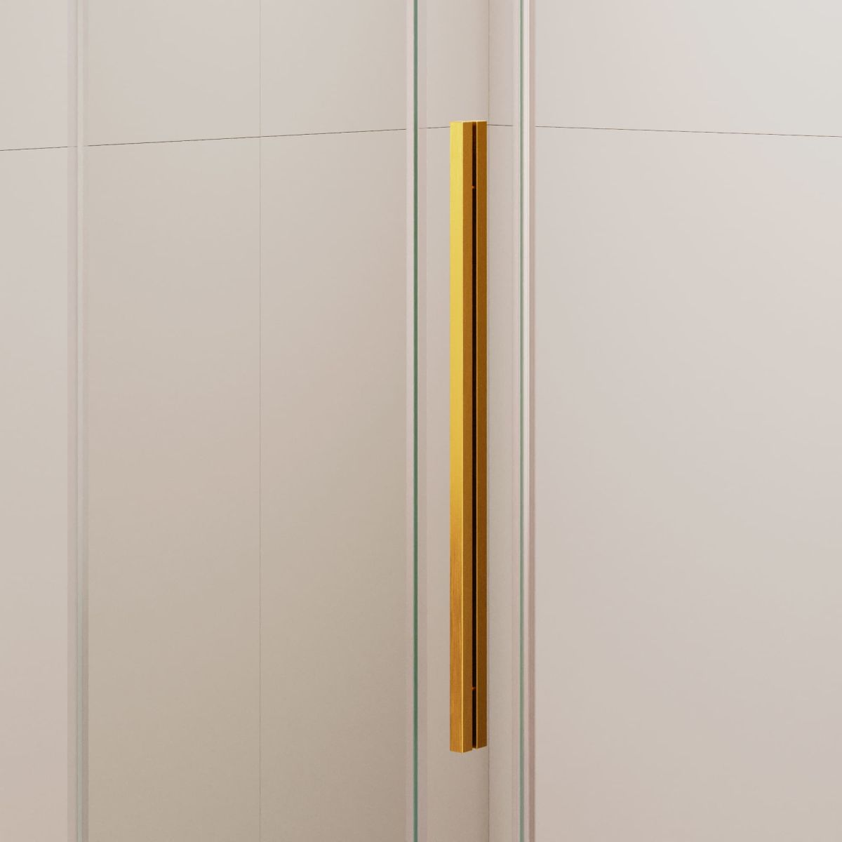 Одной из выдающихся особенностей этой душевой двери является ее высококачественная конструкция. Толщина стекла 6 мм обеспечивает прочность и стабильность, а прозрачный цвет стекла придает элегантность вашей ванной комнате. Цвет профиля золотой кистью идеально дополняет стекло, придавая ему роскошный и утонченный вид.
