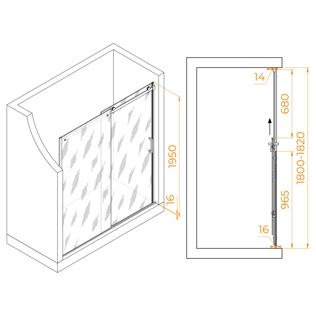 Общая высота двери составляет 1950 мм, позволяя ей легко пропускать даже самых высоких людей. Конструкция раздвижных дверей делает использование двери удобнее и экономит место в ванной комнате. Двойные ролики плавно и бесшумно открывают и закрывают дверь.