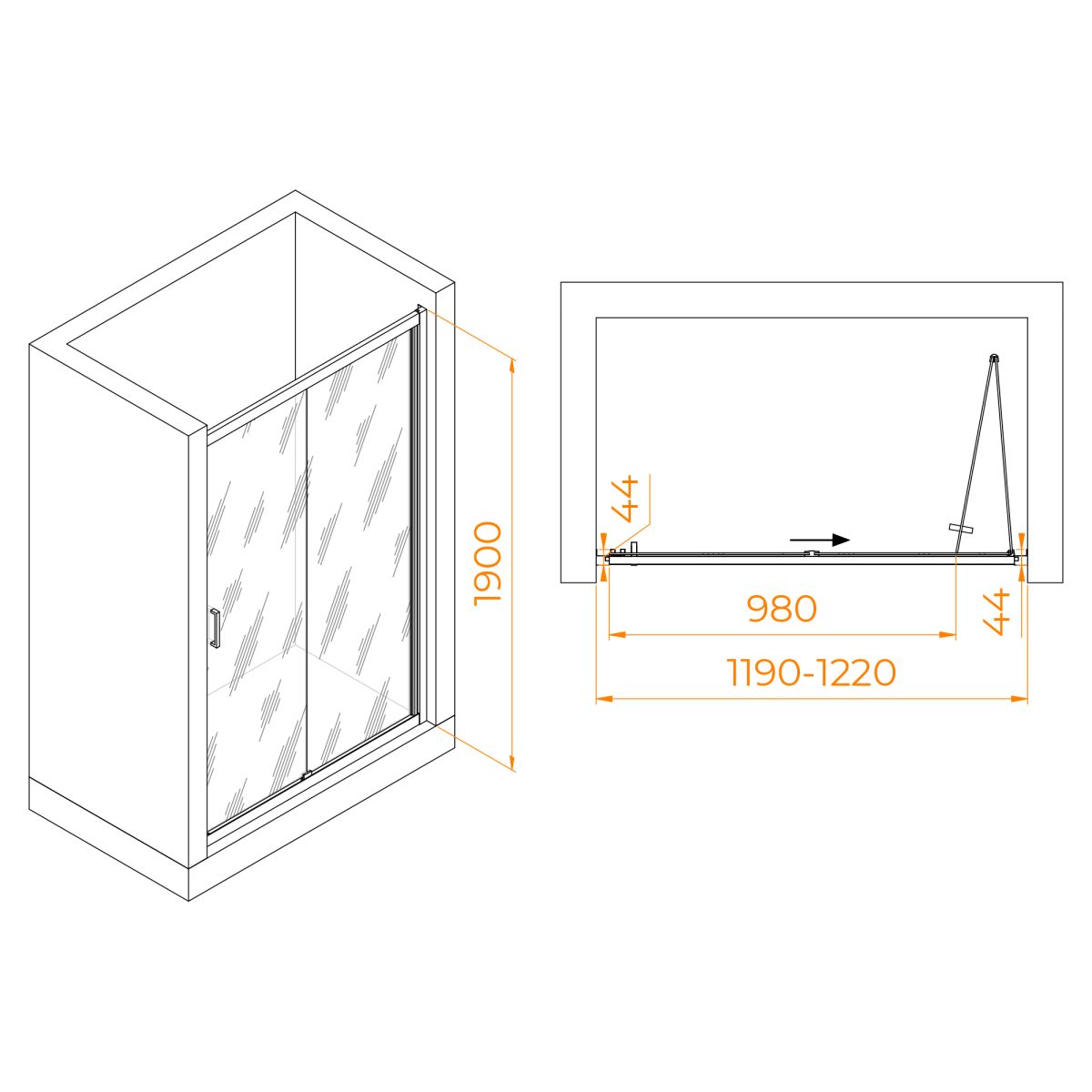 Душевая дверь имеет большой размерный ряд и тем самым расширяет свой функционал. Ее выбирают к покупке для ниш шириной от 69 до 72 см. Подходит как для самых маленьких по площади ванных комнат, так и для ниш требующих максимально широкий вход - 980 мм (модели с размером 1200 мм). Практична для людей крупного телосложения.