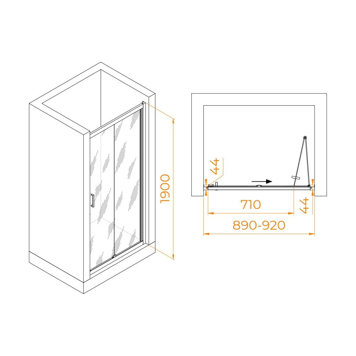Дверь в душ имеет универсальную установку открытия – на левую или правую стороны.