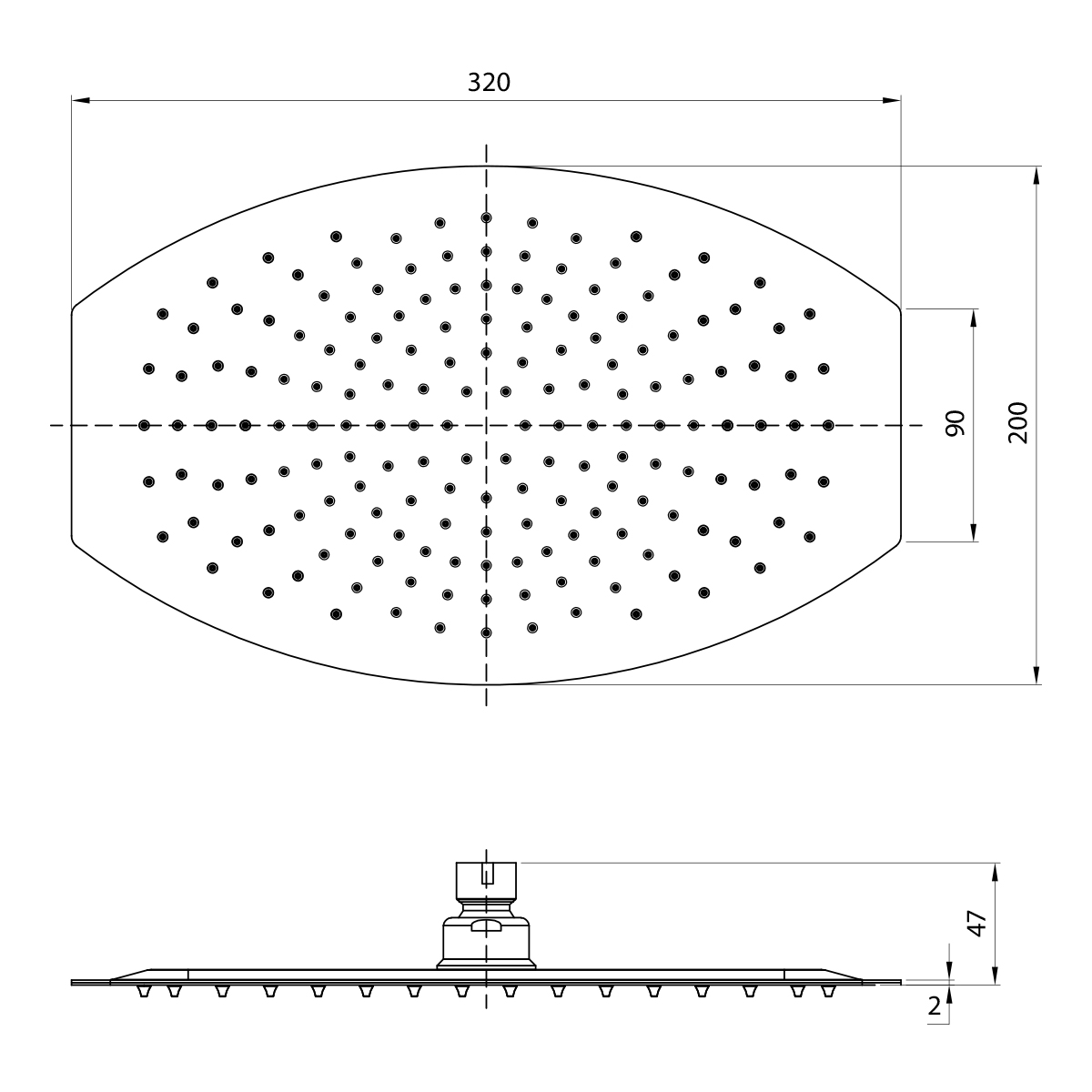 Душевая лейка верхняя Lemark LM9485S, овальная, 320х200 мм., нерж. сталь