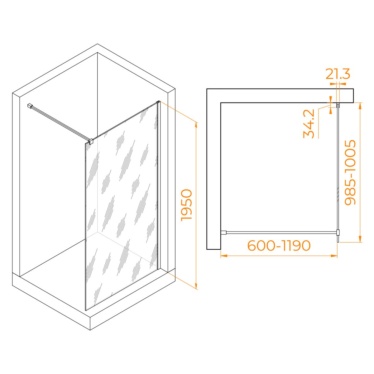 Перегородка изготовлена из закаленного стекла толщиной 10 мм, что обеспечивает надежность и долговечность изделия. Прозрачное стекло позволяет вам наслаждаться свежими ощущениями во время принятия душа, создавая визуальное пространство и эффект простора в ванной комнате. Благодаря анодированному алюминиевому профилю цвета хром, перегородка идеально сочетается со стилем вашей ванной комнаты и добавляет элегантность и современность в интерьер.