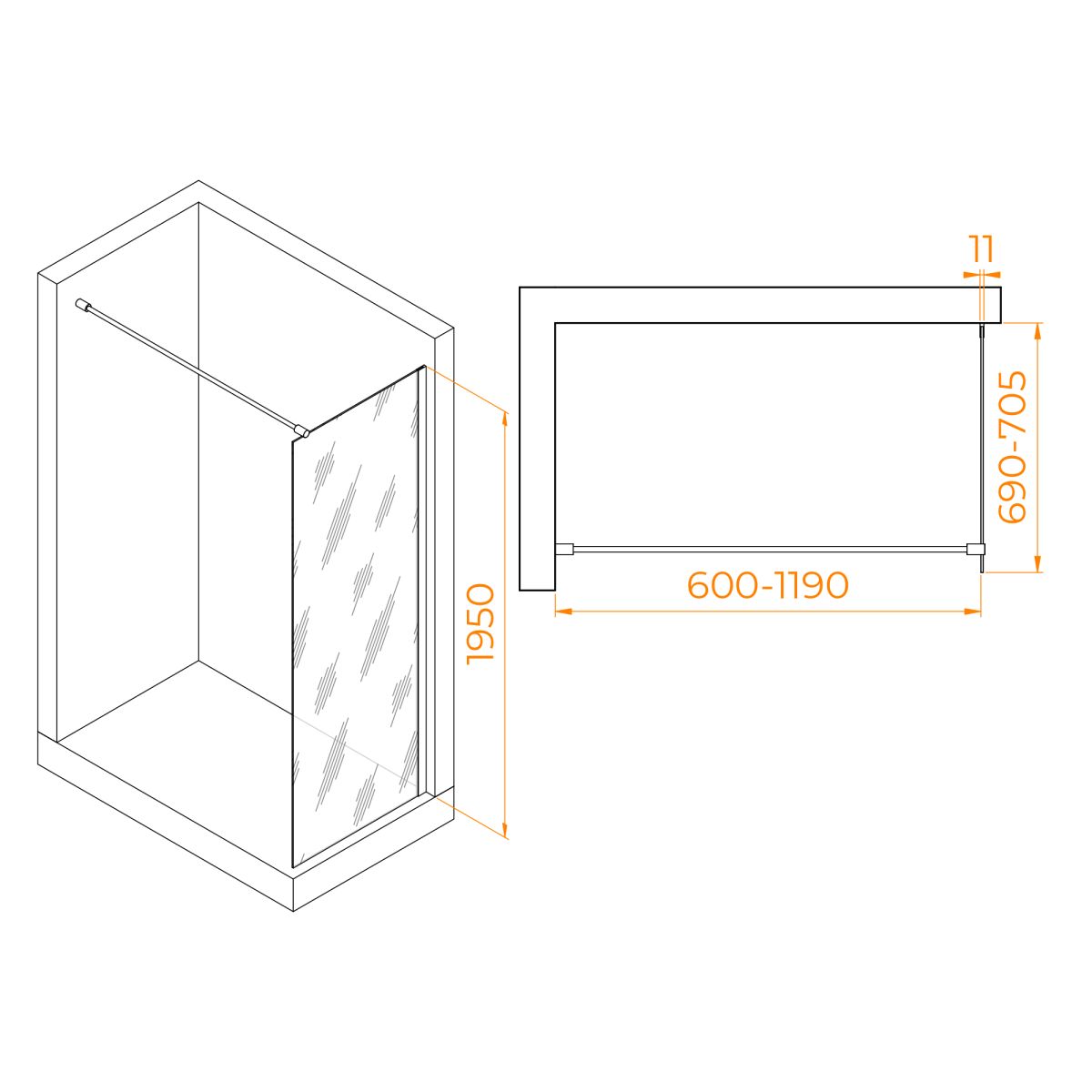 Высота перегородки составляет 195см, что обеспечивает достаточное пространство для комфортного использования душа. Конструкция имеет 3 класс герметичности, что обеспечивает защиту от протекания воды и сохраняет сухую и безопасную зону для душа.