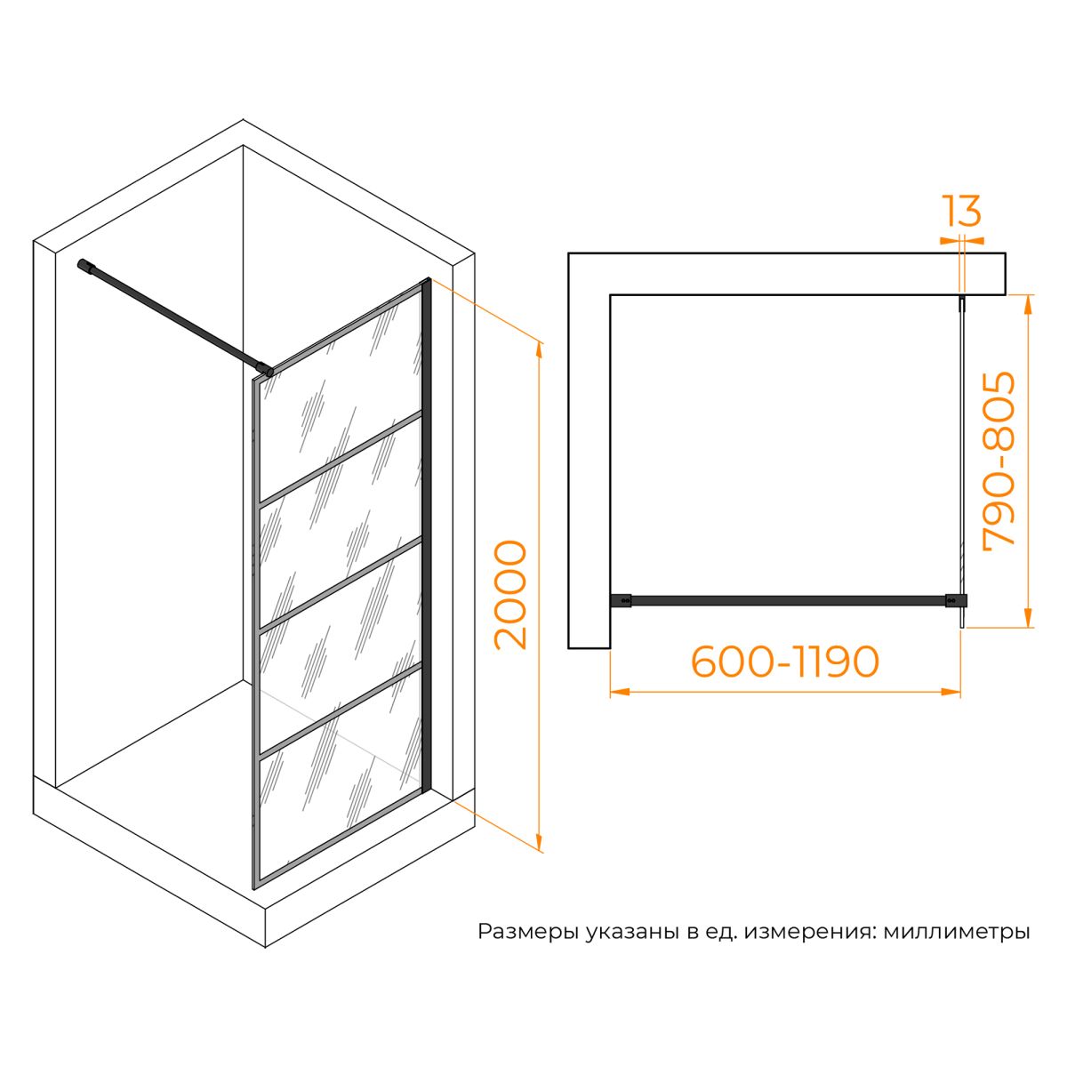 Душевая перегородка WA-019B — идеальное решение для создания стильного и функционального пространства в ванной комнате. С общей высотой 2000 мм, она надежно защищает от разбрызгивания воды за пределы душевой зоны.