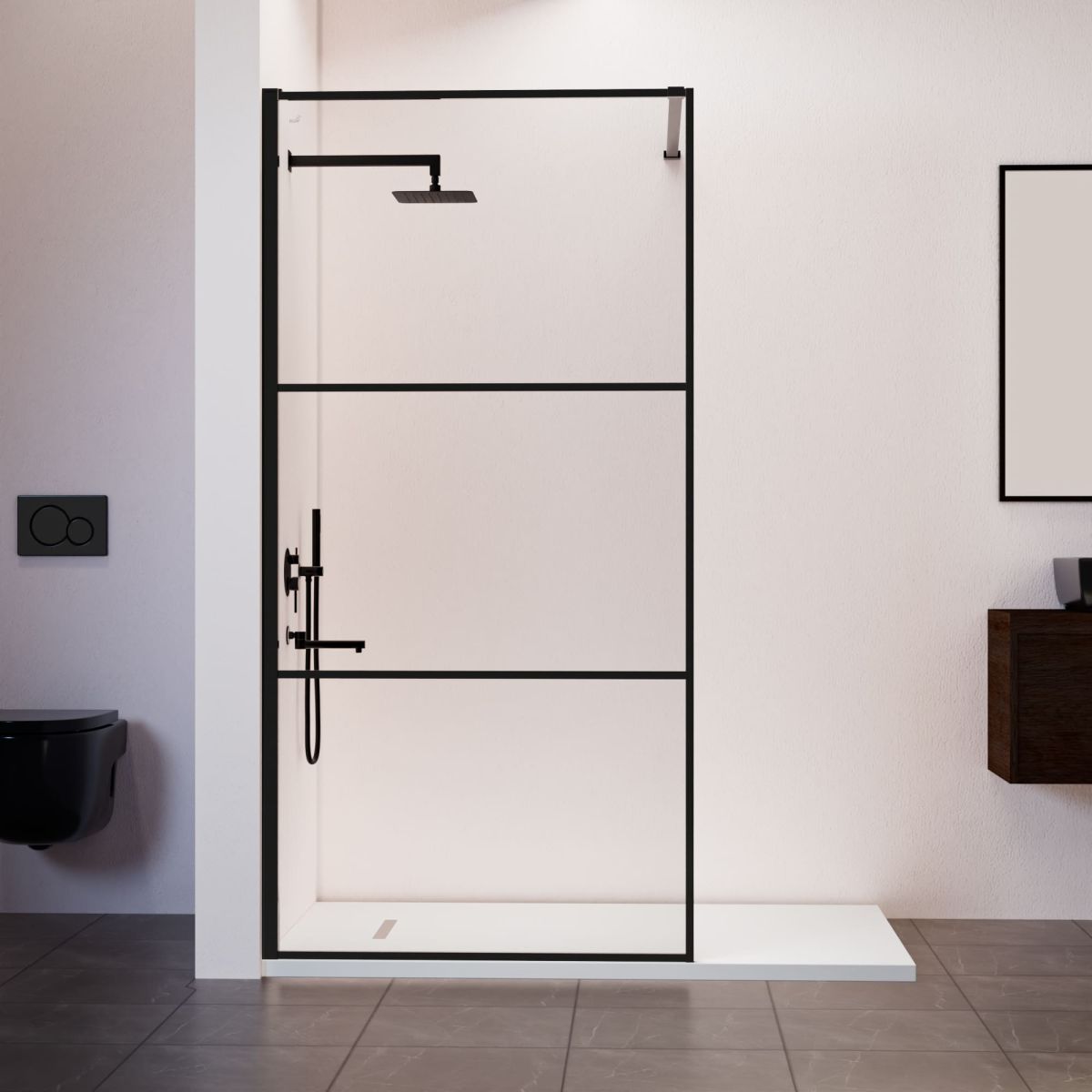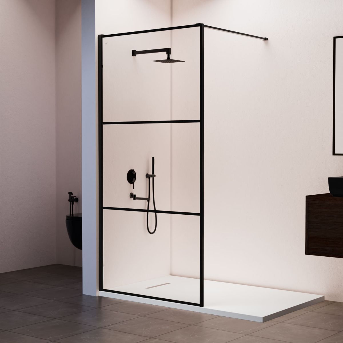 Душевая перегородка состоит из 3-х стекольных полотен (8мм), которые обрамлены изящным анодированным алюминиевым профилем!