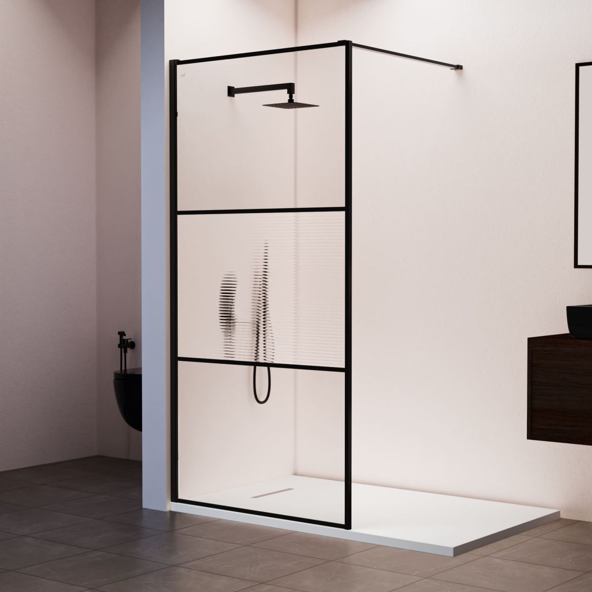 Душевая перегородка состоит из 3-х стекольных полотен (8мм), которые обрамлены изящным анодированным алюминиевым профилем!