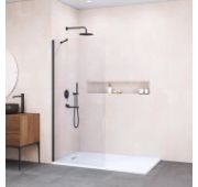 Толщина стекла перегородки составляет 6 мм, что обеспечивает прочность и надежность конструкции. Цвет стекла выполнен в прозрачном варианте, что позволяет сохранить видимость и пространство в ванной комнате. Цвет профиля черный, что придает перегородке современный и стильный вид.