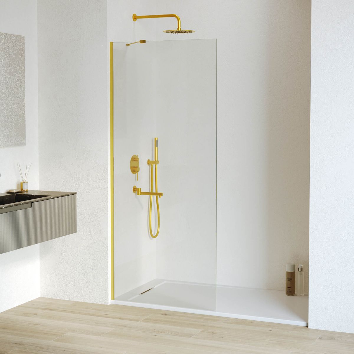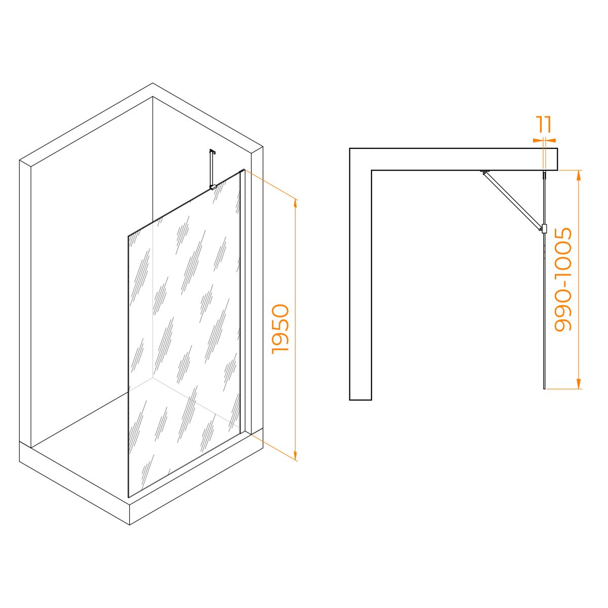 Профиль имеет цвет золото браш, что придает перегородке для душа современный и элегантный вид. Высота перегородки составляет 195 см, что обеспечивает комфортное использование для большинства пользователей.
