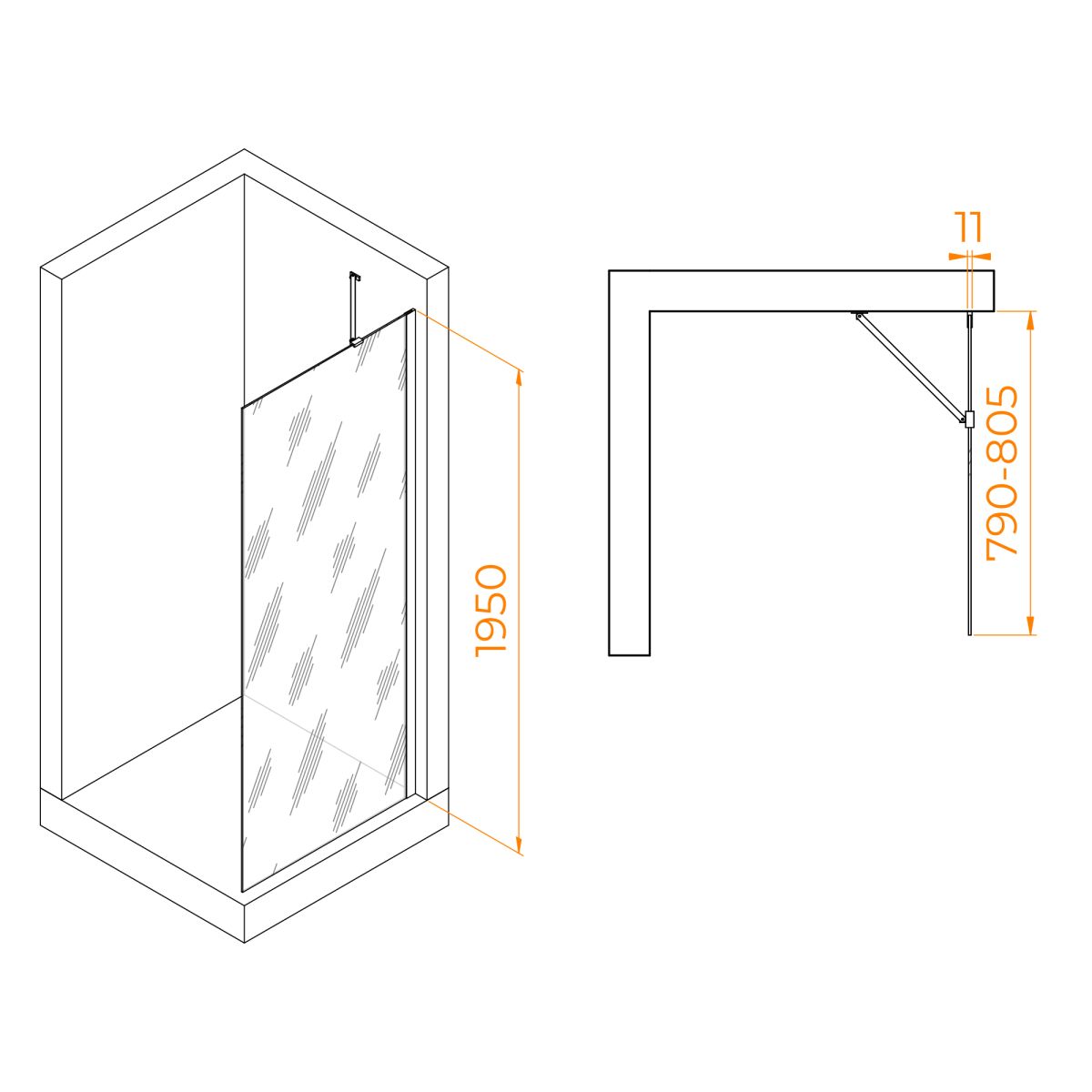 Профиль имеет цвет хром, что придает перегородке для душа современный и элегантный вид. Высота перегородки составляет 195 см, что обеспечивает комфортное использование для большинства пользователей.
