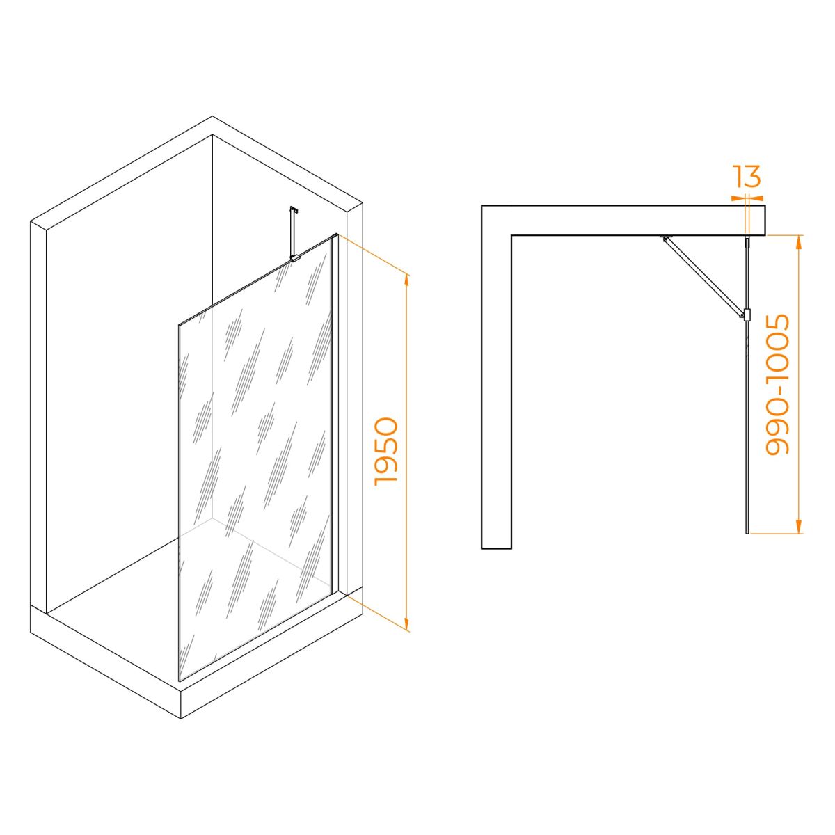 Высота перегородки составляет 195 см, что позволяет использовать ее в различных типах помещений. Благодаря классу герметичности 3, зона душа остается сухой и защищенной от воды, что является очень важным для комфортного использования.