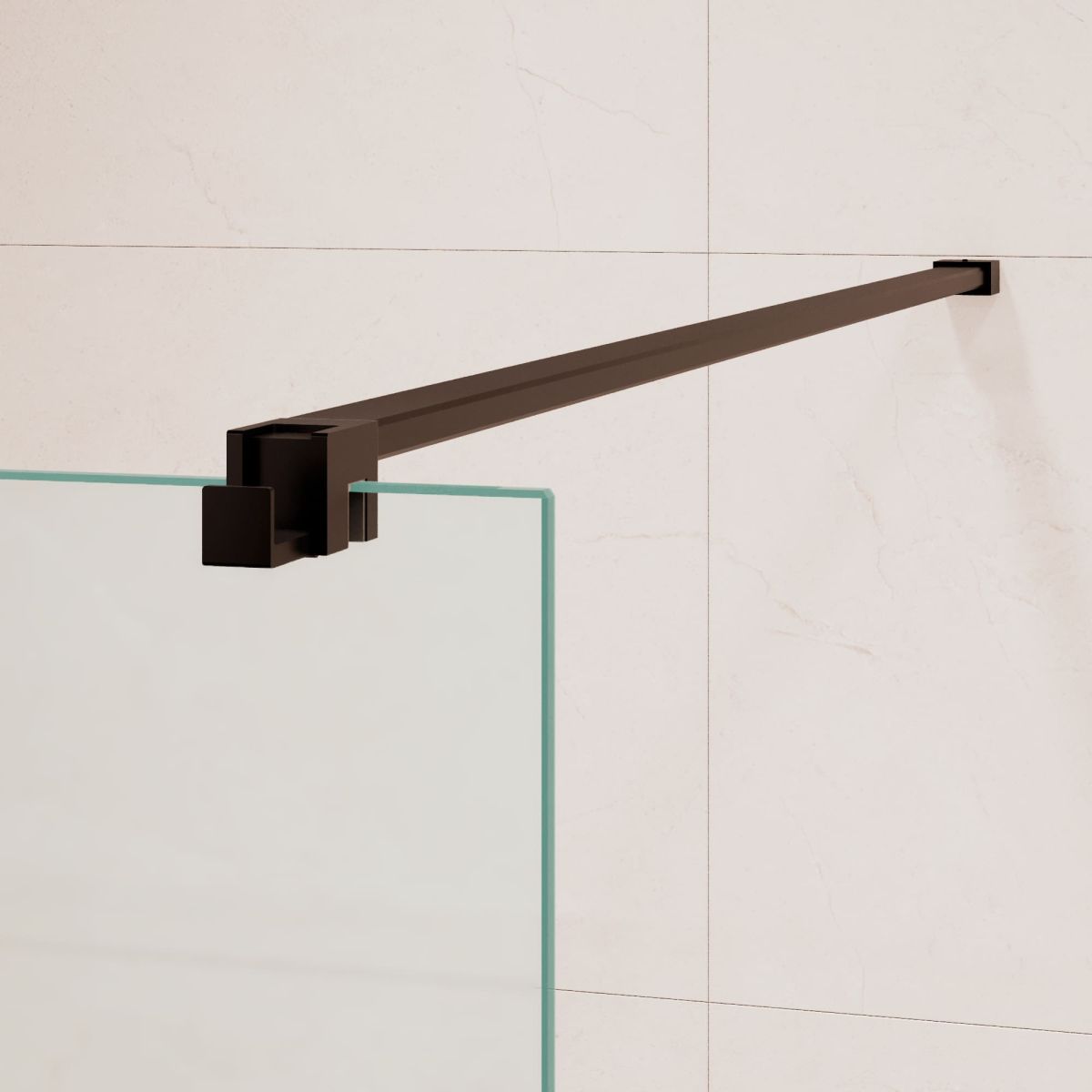Фурнитура штанги, штанга-держатель и крючок для душевого ограждения выполнены из нержавеющей стали. Фурнитура состоит из крепежного коннектора стена-штанга и коннектора штанга-стекло. При необходимости длину штанги можно уменьшить, обрезав до необходимой длины.