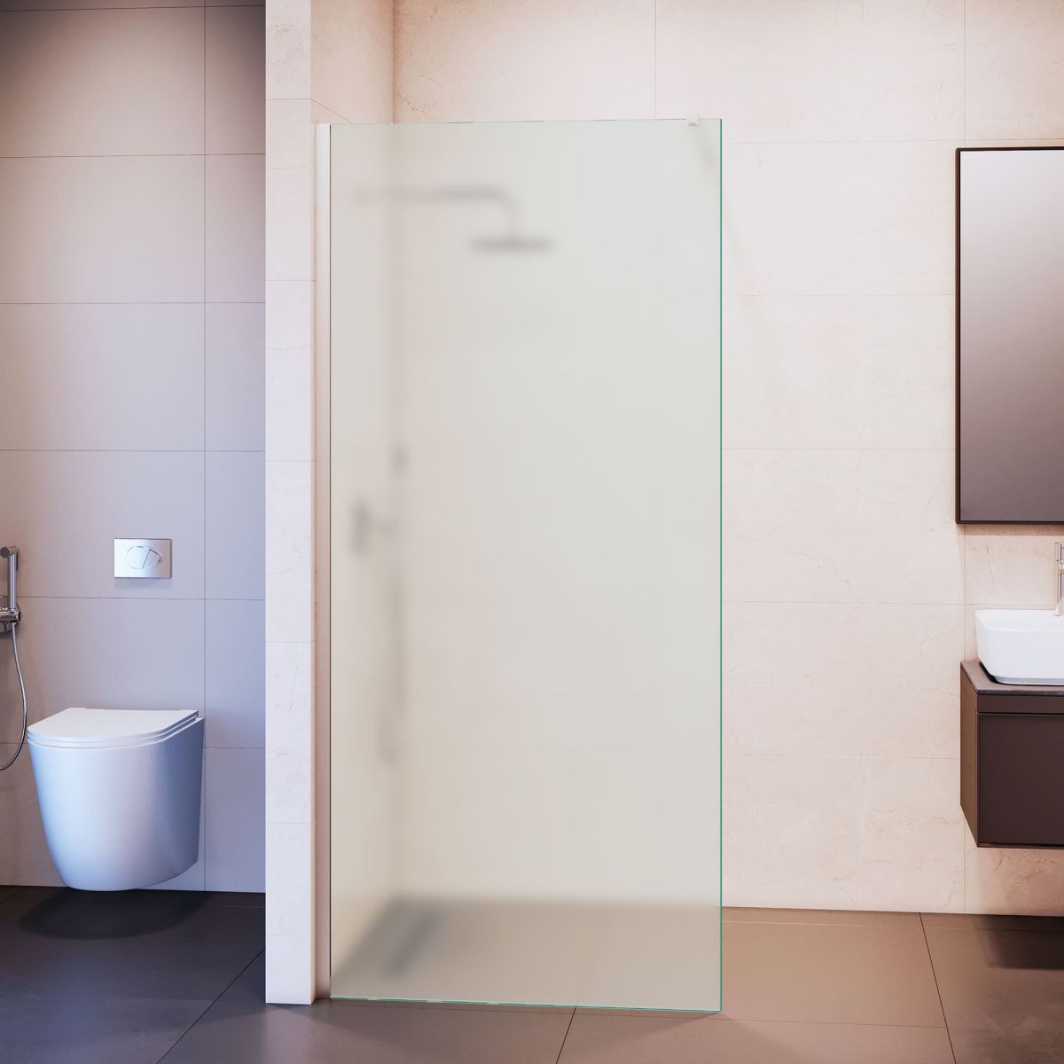 Закалённое стекло толщиной 8 мм имеет высокую прочность и безопасность. Бескаркасная модель, однако Торец по всему периметру стекольного полотна обработан евро кромкой, что обеспечивает высокую устойчивость к торцевым ударам. При расколе бьется в мелкие гранулированные осколки.