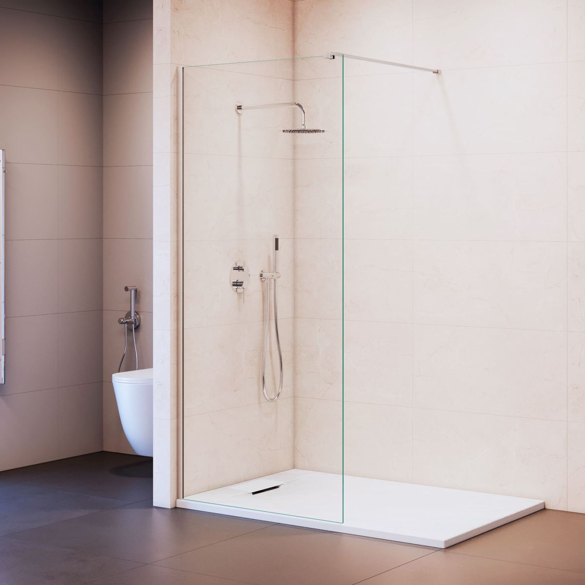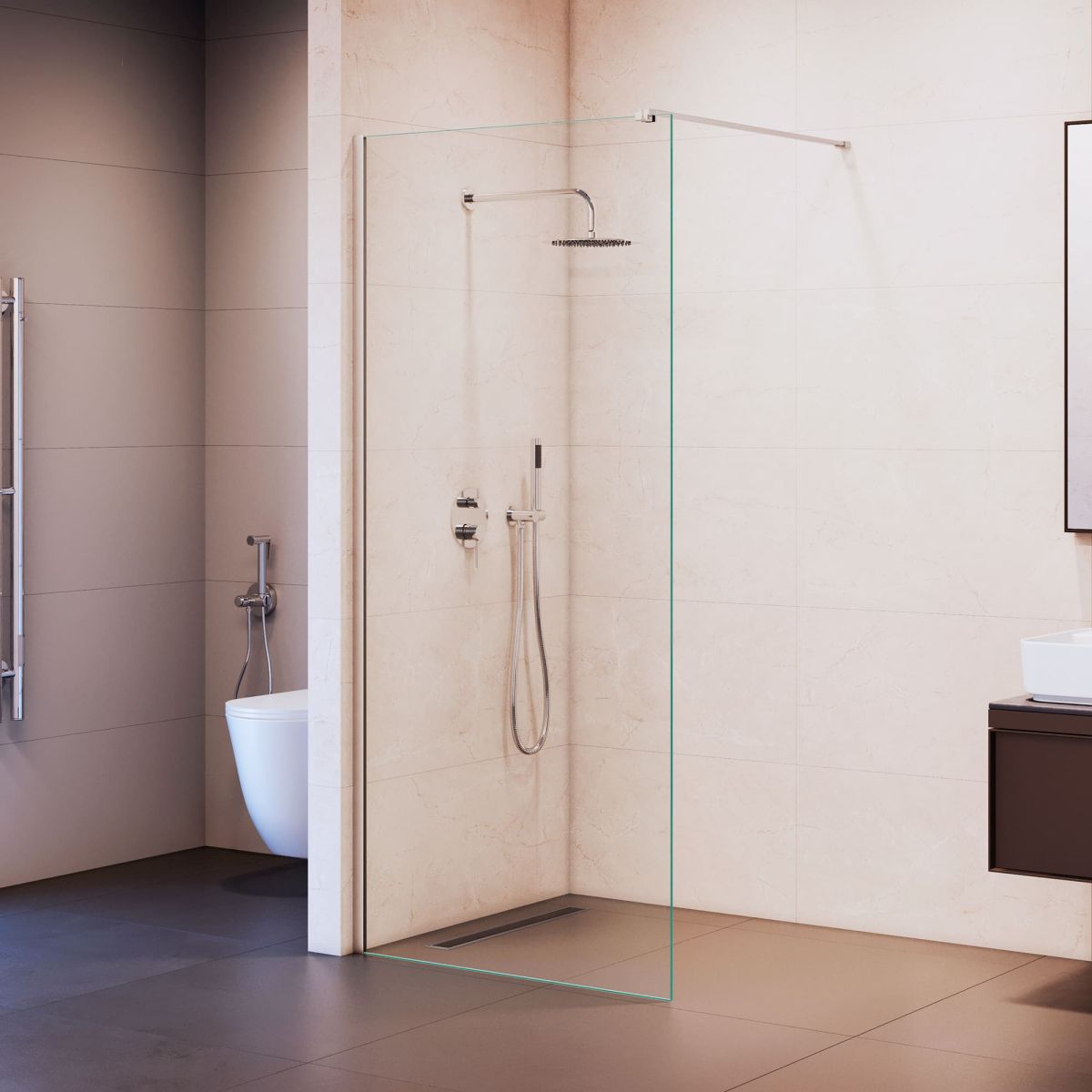 Душевые перегородки оснащены усиленным, но изящным, антикоррозийным профилем и высокопрочным закалённым стеклом, которое крепче простого в 10 раз, поэтому имеет высокую устойчивость к механическому воздействию, к бытовой химии и сохраняет эстетичный внешний вид при интенсивной эксплуатации во влажной среде. Все перегородки имеют точную геометрию поэтому идеально подходят для установки на душевой поддон, подиум или ровный пол из керамической плитки, что делает их универсальными в установке.