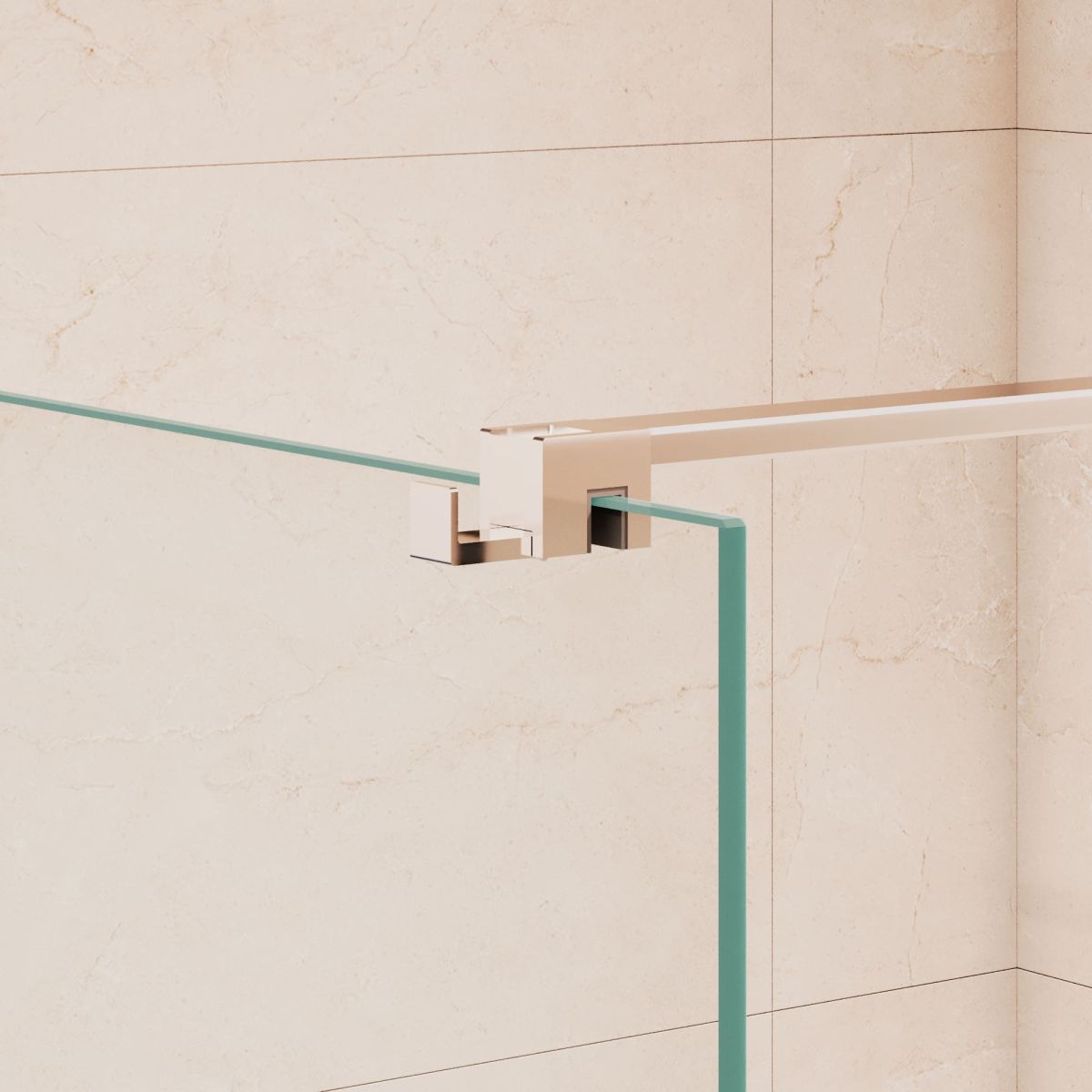 Фурнитура штанги, штанга-держатель и крючок для душевого ограждения выполнены из нержавеющей стали. Фурнитура состоит из крепежного коннектора стена-штанга и коннектора штанга-стекло. При необходимости длину штанги можно уменьшить, обрезав до необходимой длины.