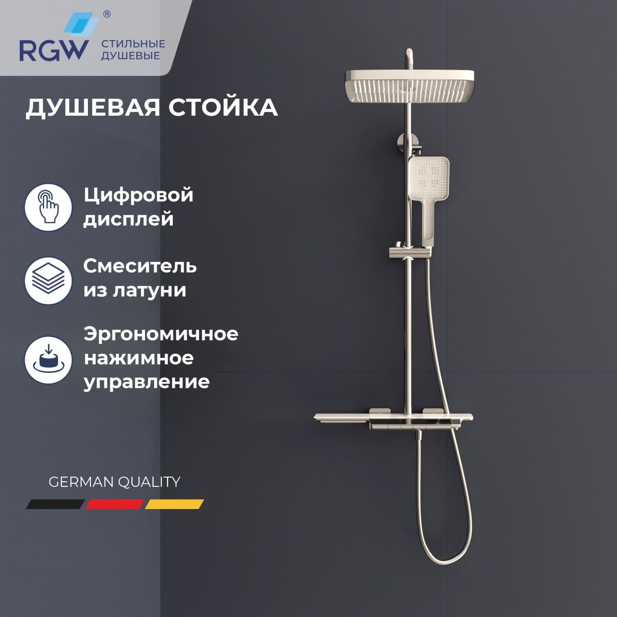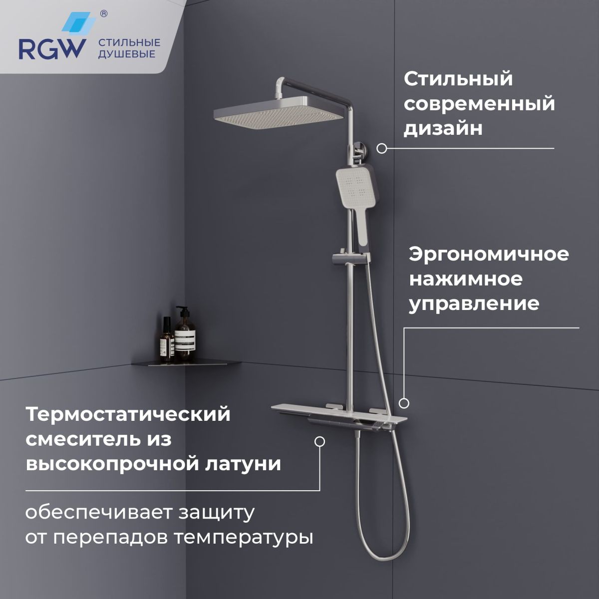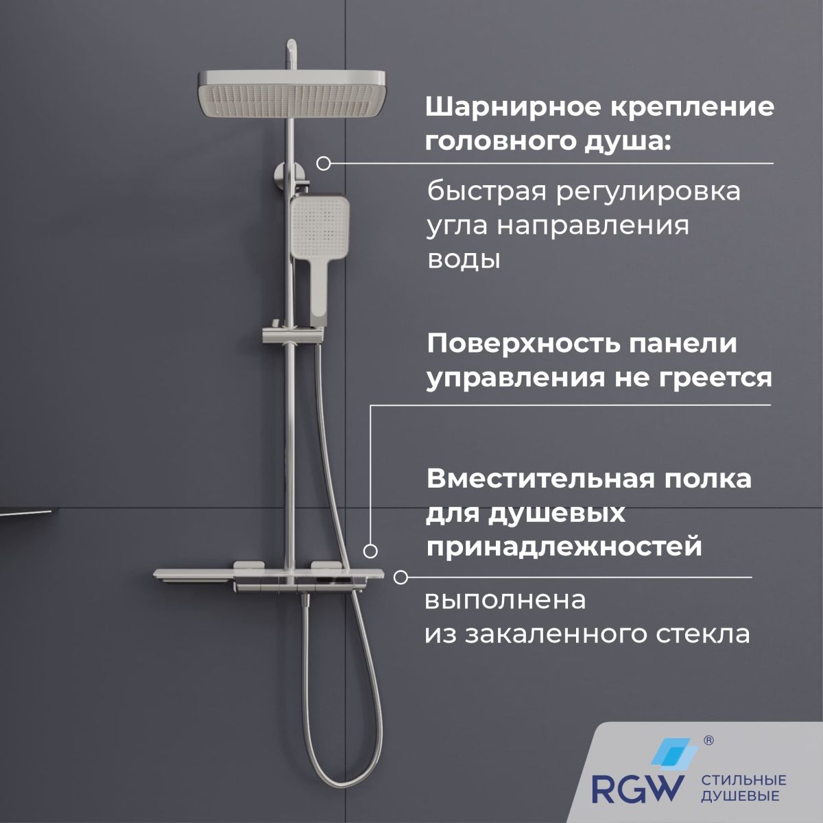 - Вместительная стеклянная полка для душевых принадлежностей;