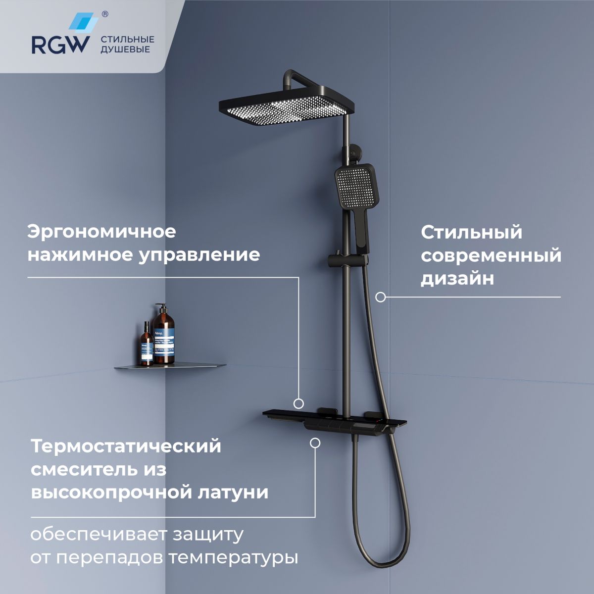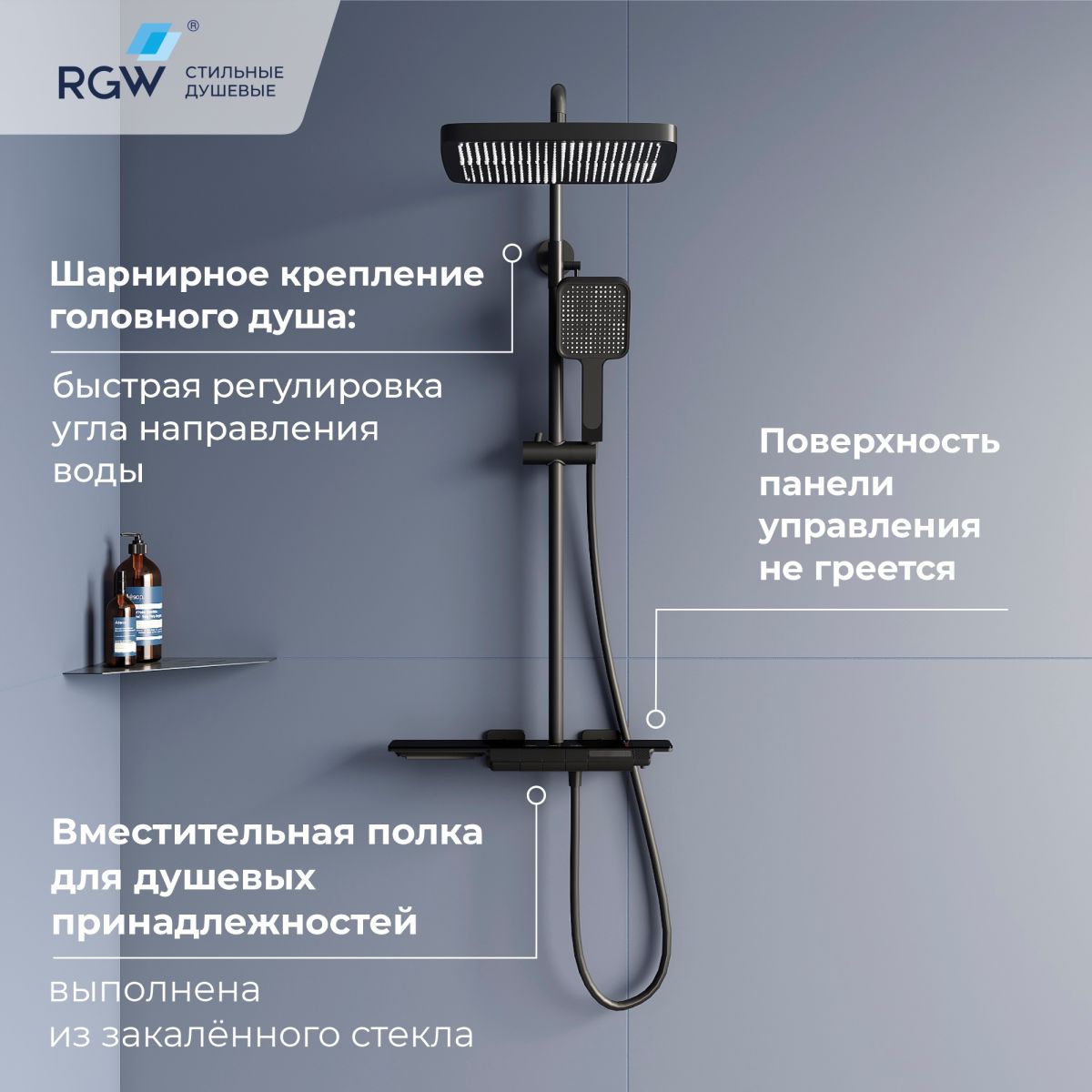 - Вместительная стеклянная полка для душевых принадлежностей;