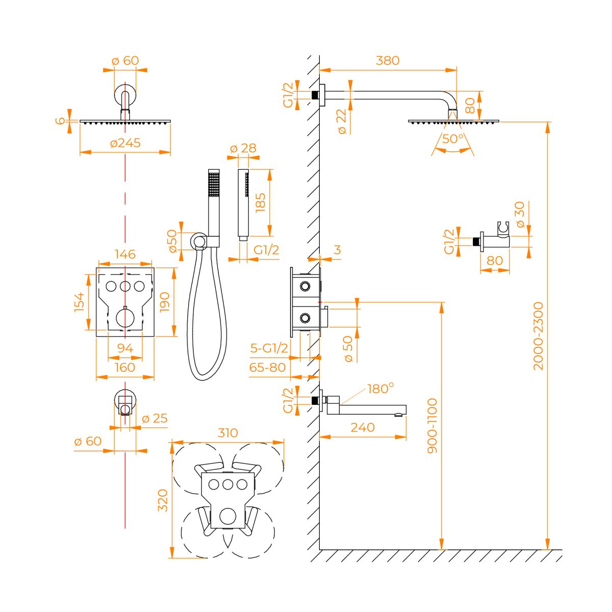 - Шланг ручного душа – нержавеющая сталь, длина 1.5 м