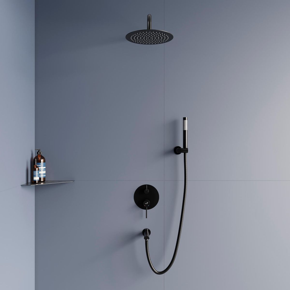 Преимущество встраиваемой системы заключается в том, что основная функциональная часть спрятана в стену, что позволяет значительно увеличить пространство в душевой зоне.