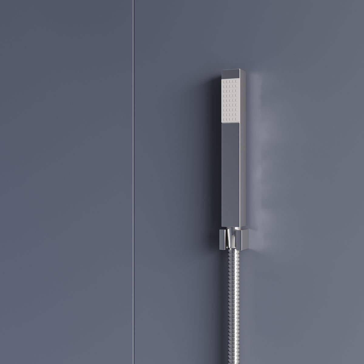 Преимущество встраиваемой системы заключается в том, что основная функциональная часть спрятана в стену, что позволяет значительно увеличить пространство в душевой зоне.