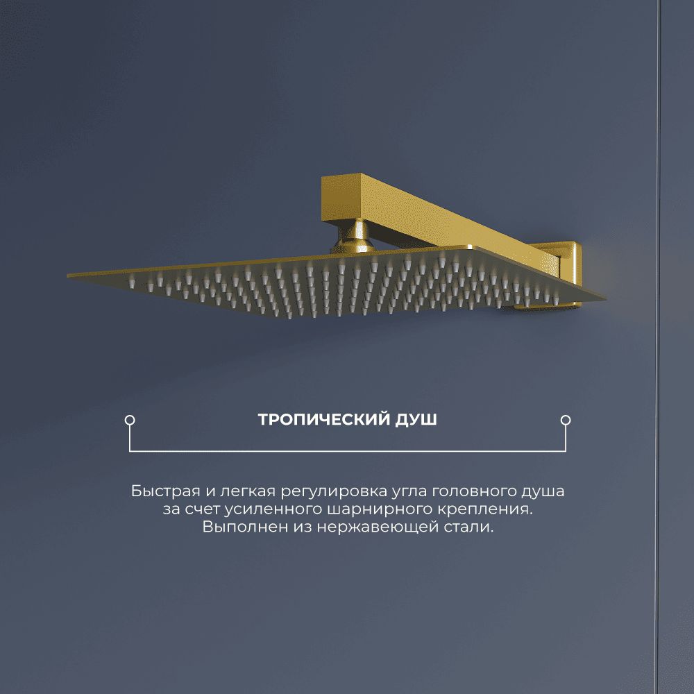 - Головной душ, горизонтальный держатель из нержавеющей стали. Головной душ оснащён шарнирным креплением, что позволяет выбрать необходимый угол направления воды