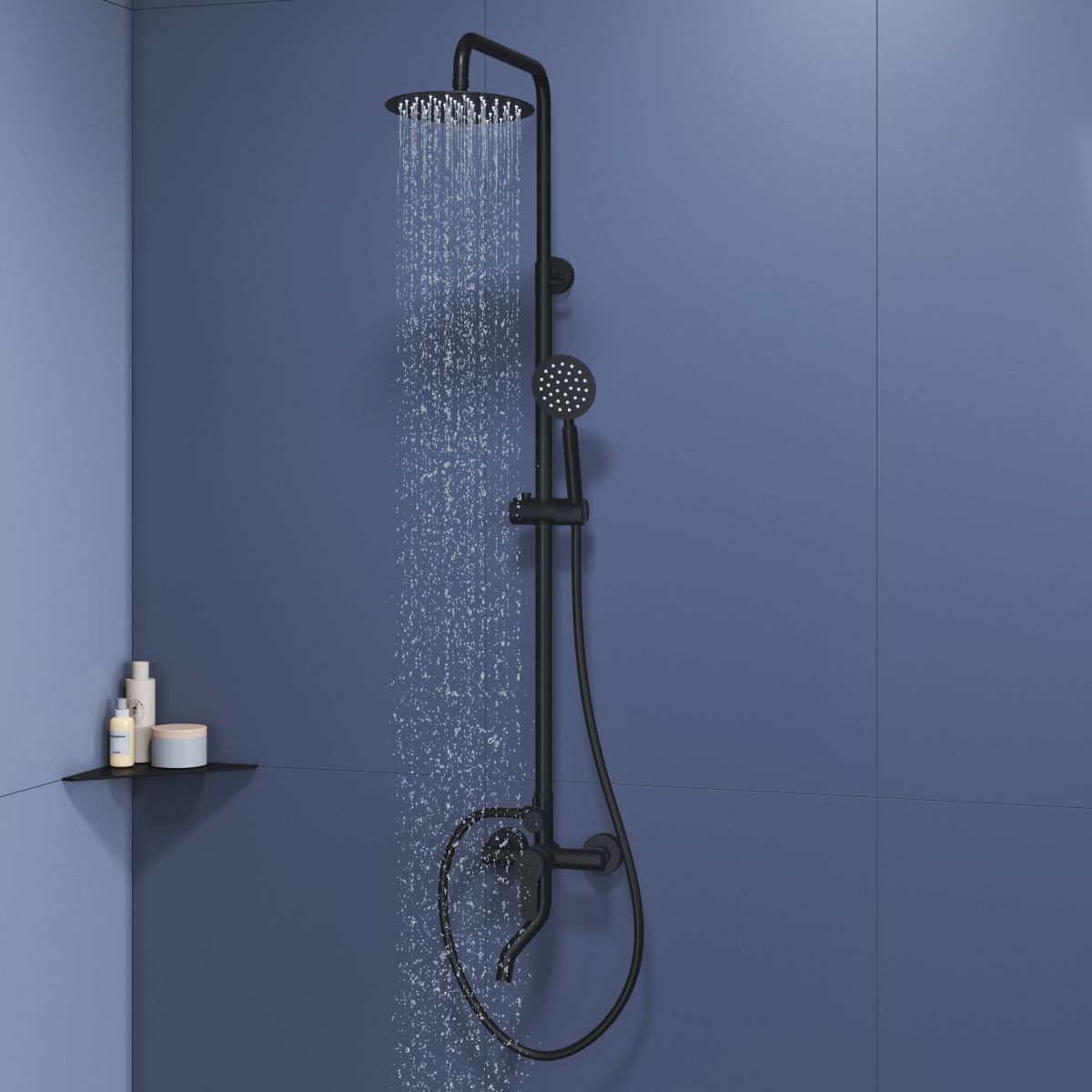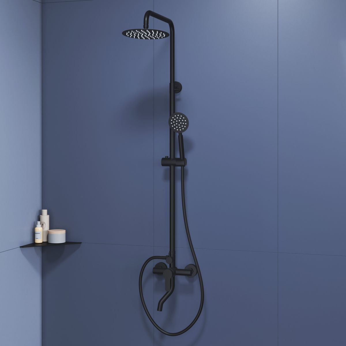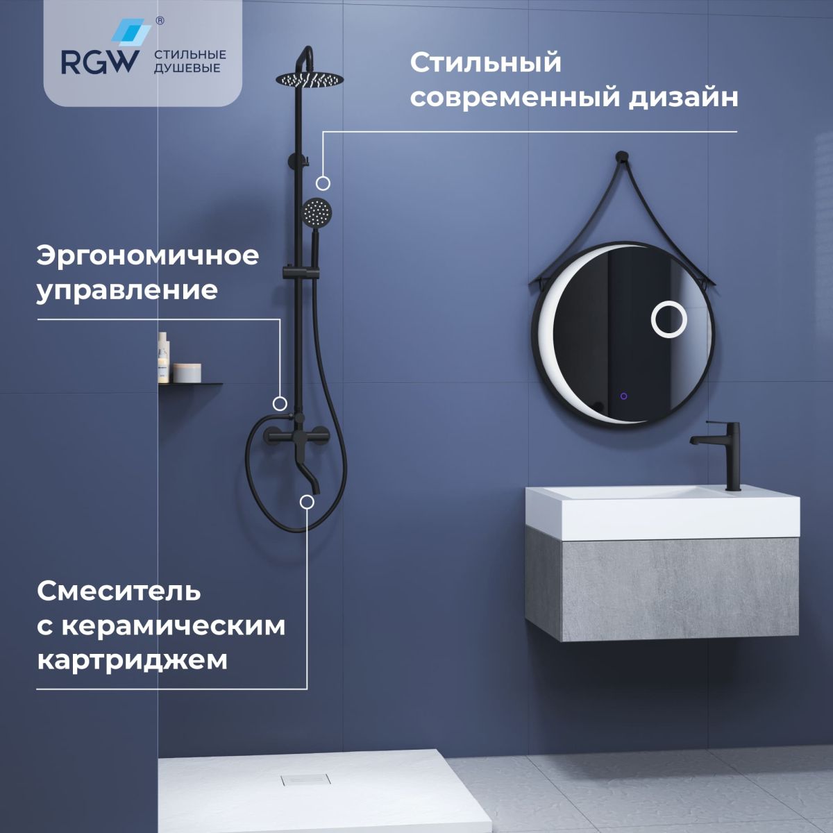 Душевая стойка со смесителем и верхним душем из стали в черном цвете RGW SP-24B