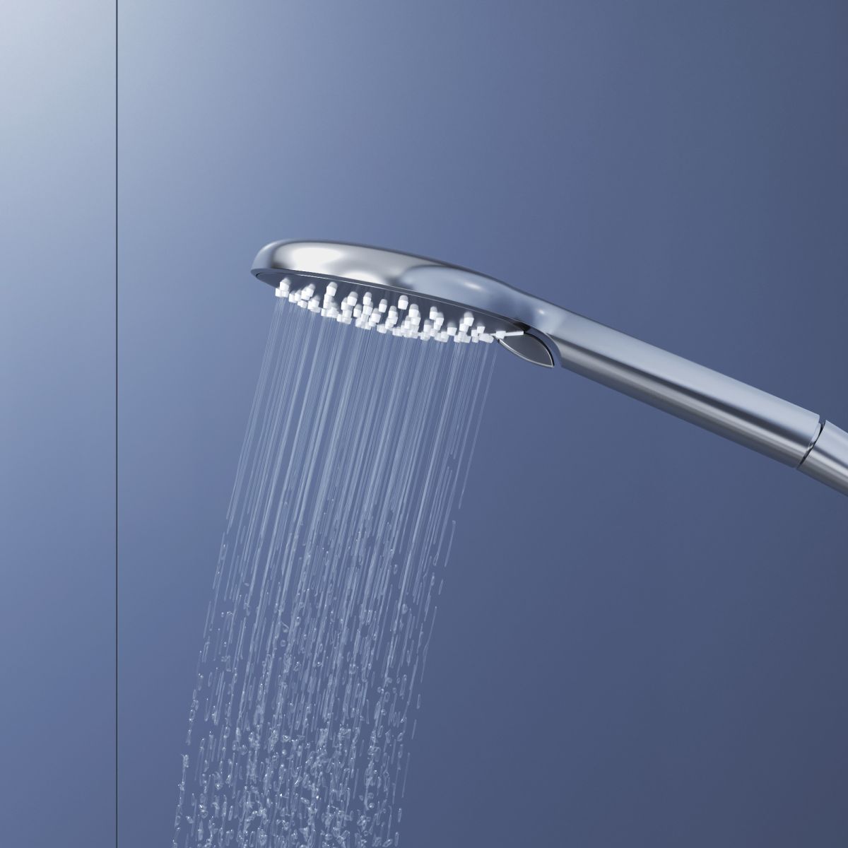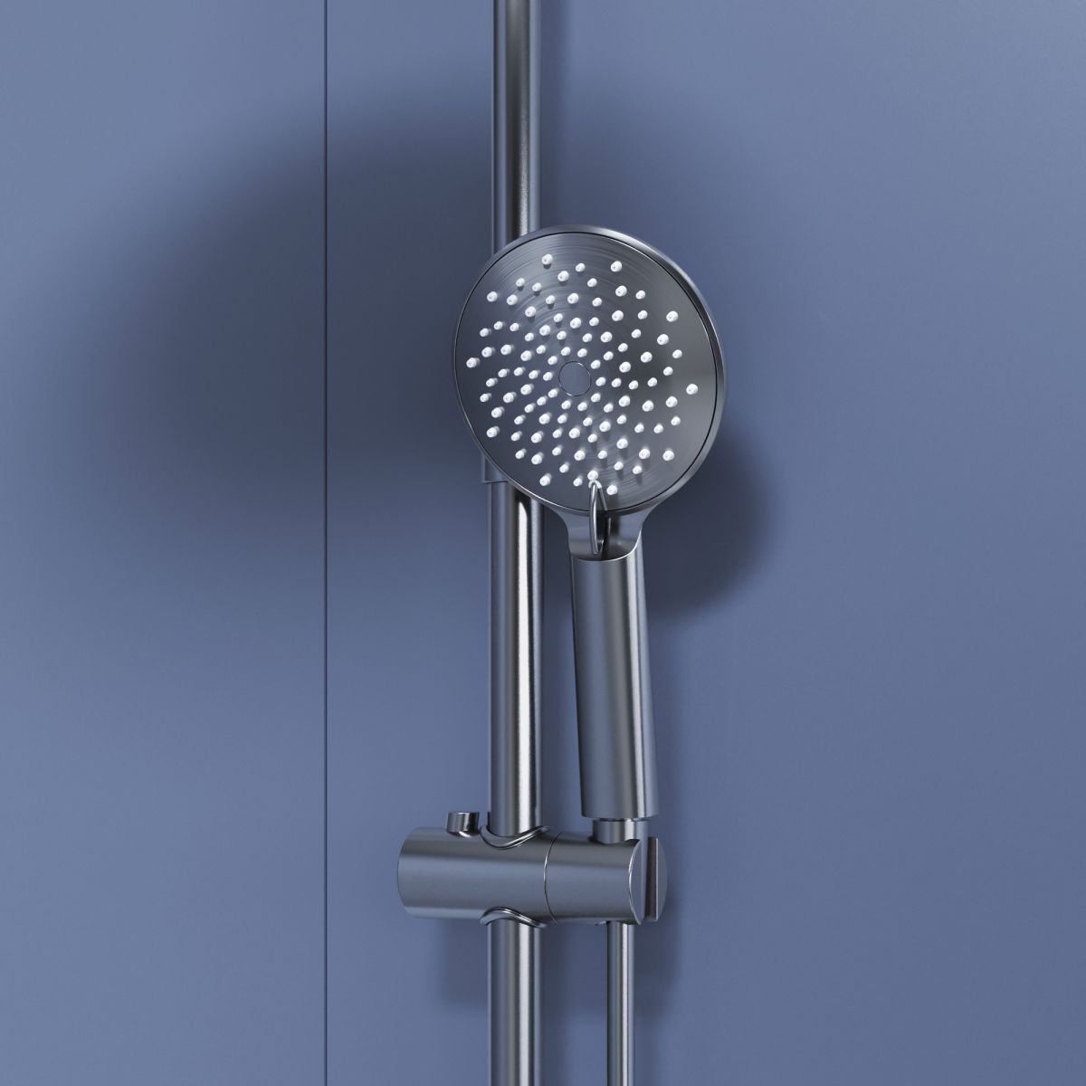 - Штанга с функцией регулировки высоты головного душа в диапазоне от 889,5 до 1139,5 мм — удобно для пользователей с любым ростом.
