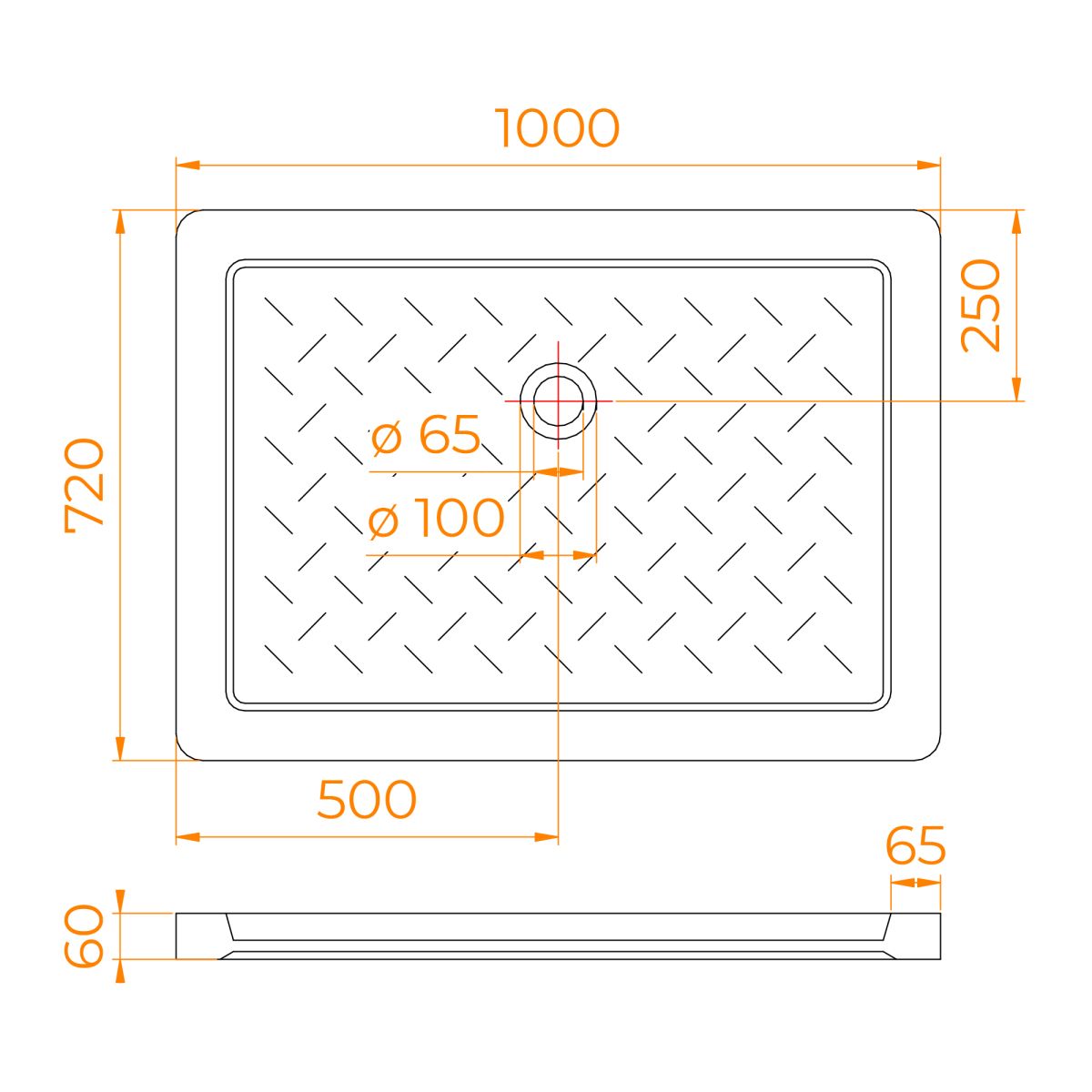 Душевой поддон керамический, прямоугольный, белый RGW CR 720x1000