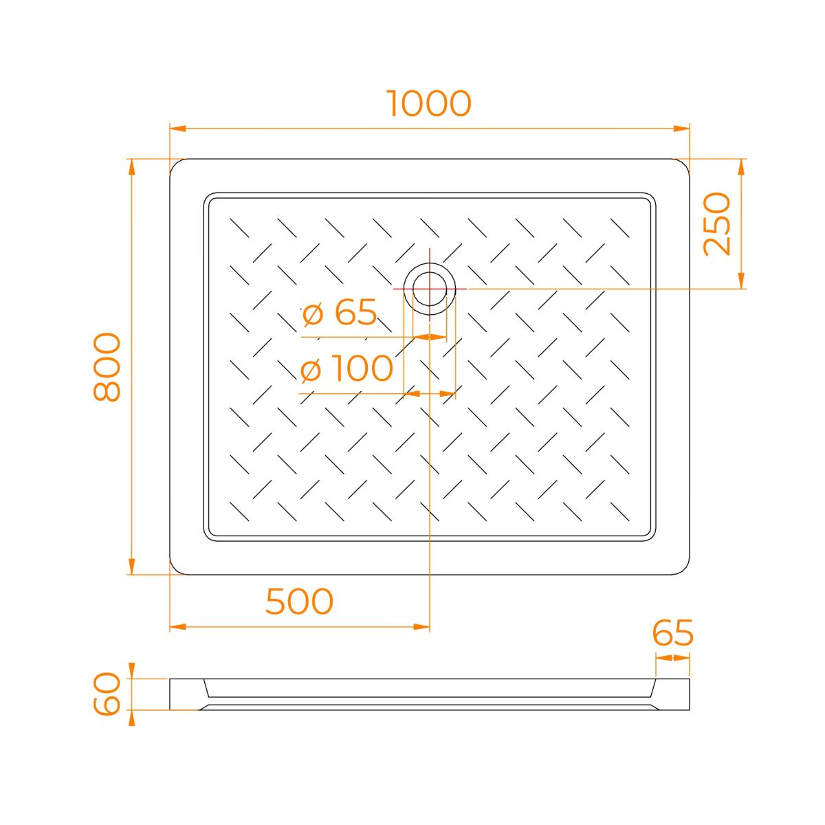 Душевой поддон керамический, прямоугольный, белый RGW CR 800x1000