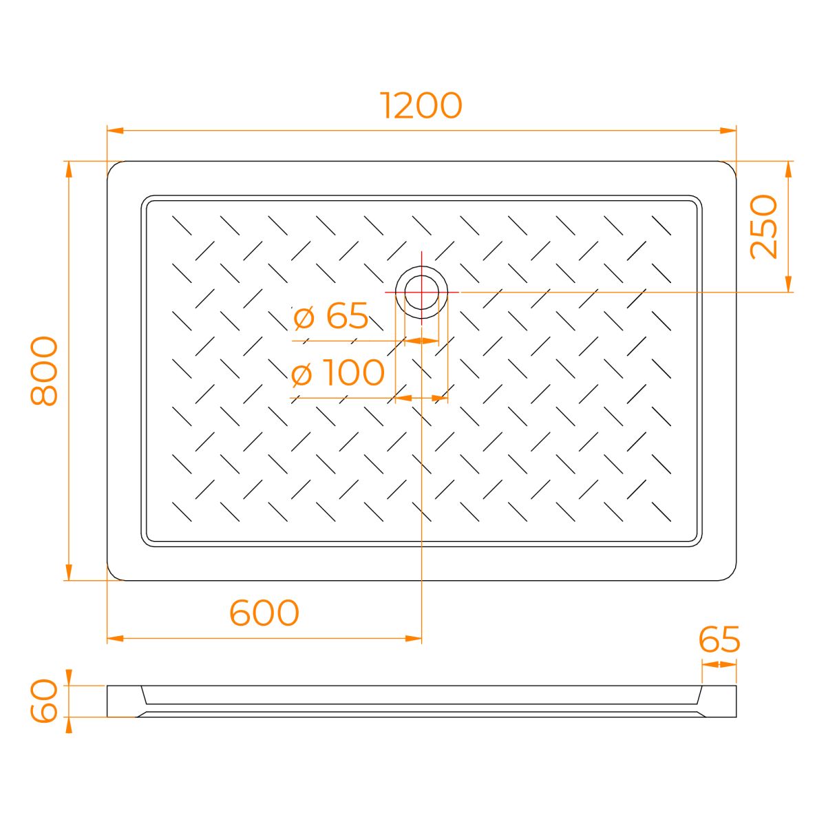 Душевой поддон керамический, прямоугольный, белый RGW CR 800x1200