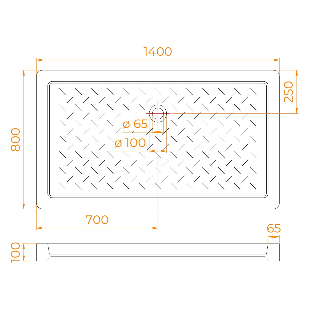 Душевой поддон керамический, прямоугольный, белый RGW CR 800x1400