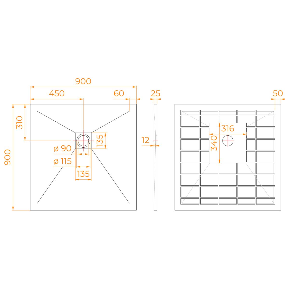 Душевой поддон квадрат STONE TRAY-G 900x900