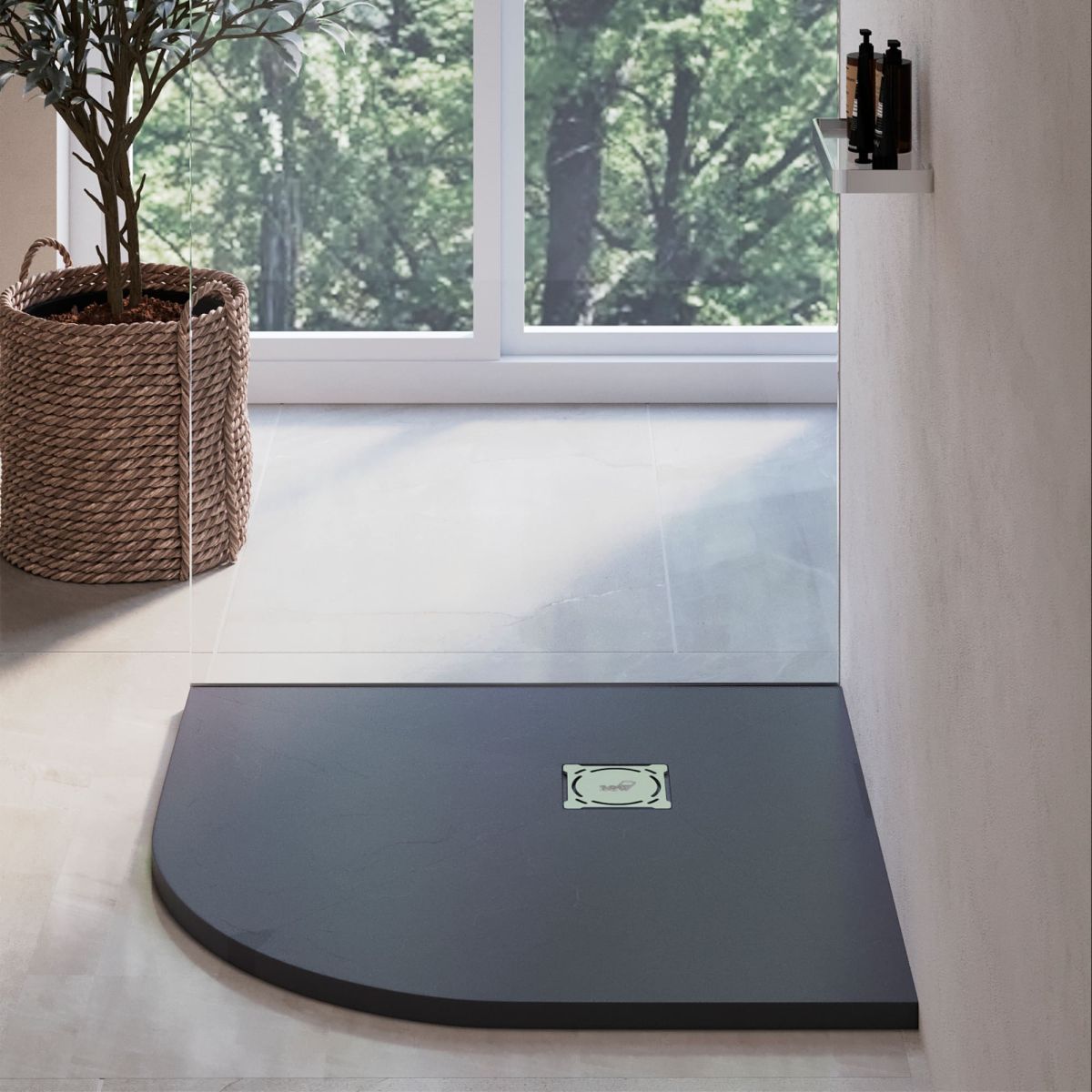 В серии душевых поддонов Stone Tray появилась новинка аккуратной полукруглой формы в остро-модном цвете «графит».